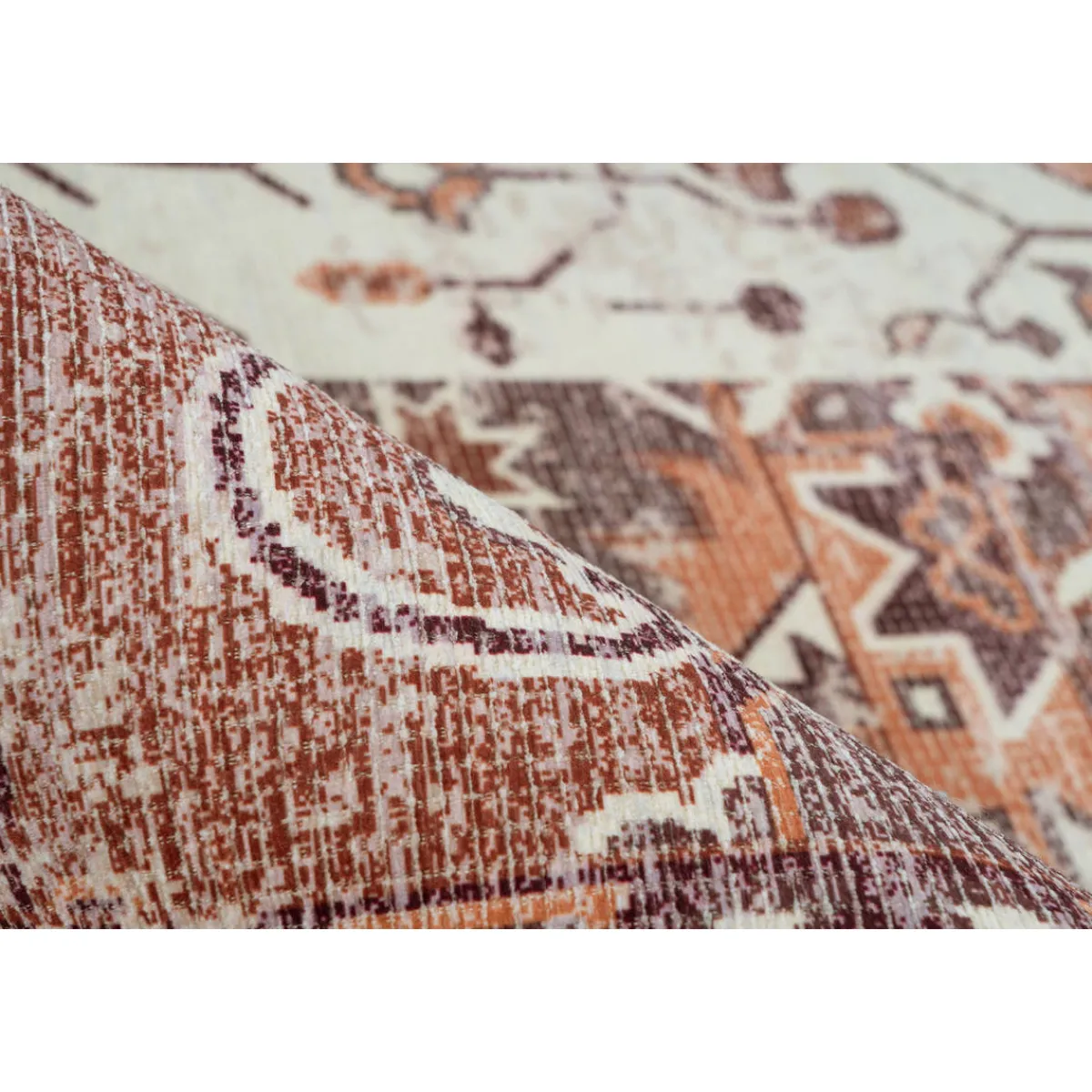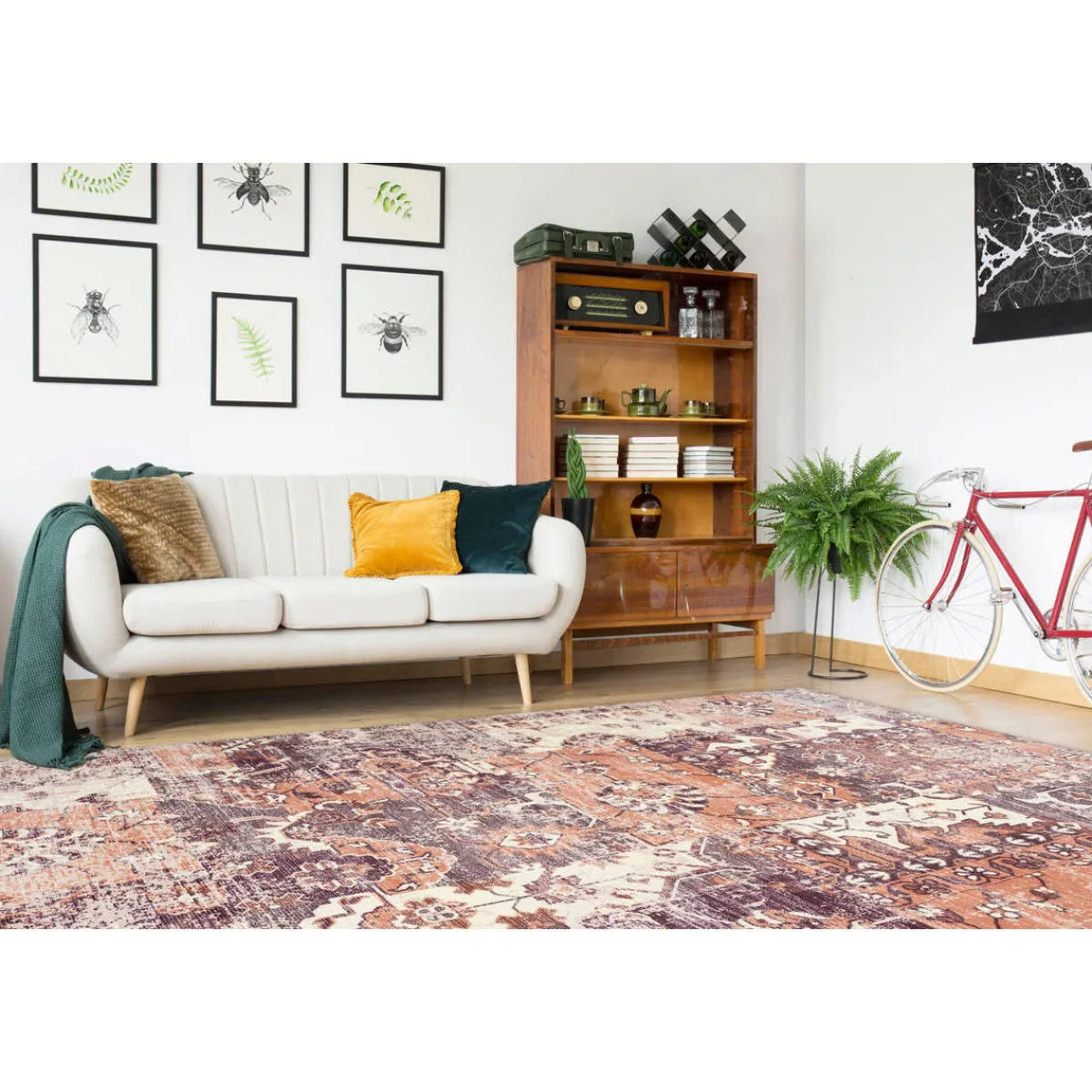 Flachflorteppich mit Vintage-CharakterDieser Teppich mit flachem Flor wird durch das geprintete Vintage-Design zum Blickfang in jedem Wohnbereich. Das Muster vereint einen attraktiven Ethno-Style mit für den Vintage-Stil typischen Verwaschungen und sorgt so für einen besonderen Look. Durch die Kombination mit attraktiven Wohnaccessoires wie Sitzpoufs oder Sofakissen im Vintage-Stil können Sie das Einrichtungskonzept verstärken und Ihren ganz individuellen Style einbringen. Zu modernen, schlichten Möbeln, beispielsweise aus Holz, lässt sich das attraktive Design optimal kombinieren, denn dort kommt er besonders gut zur Geltung. Die Vielseitigkeit des Teppichs macht ihn zu einem Allrounder, der in nahezu jedem Wohnstil seinen Platz finden kann. Die Pflegeleichtigkeit des flachen Flors ist ein weiterer Pluspunkt des Modells. Er kann auch in Räumen mit Fußbodenheizung eingesetzt werden. Verstärkt ist der Flor mit einem Rücken aus Canvas.