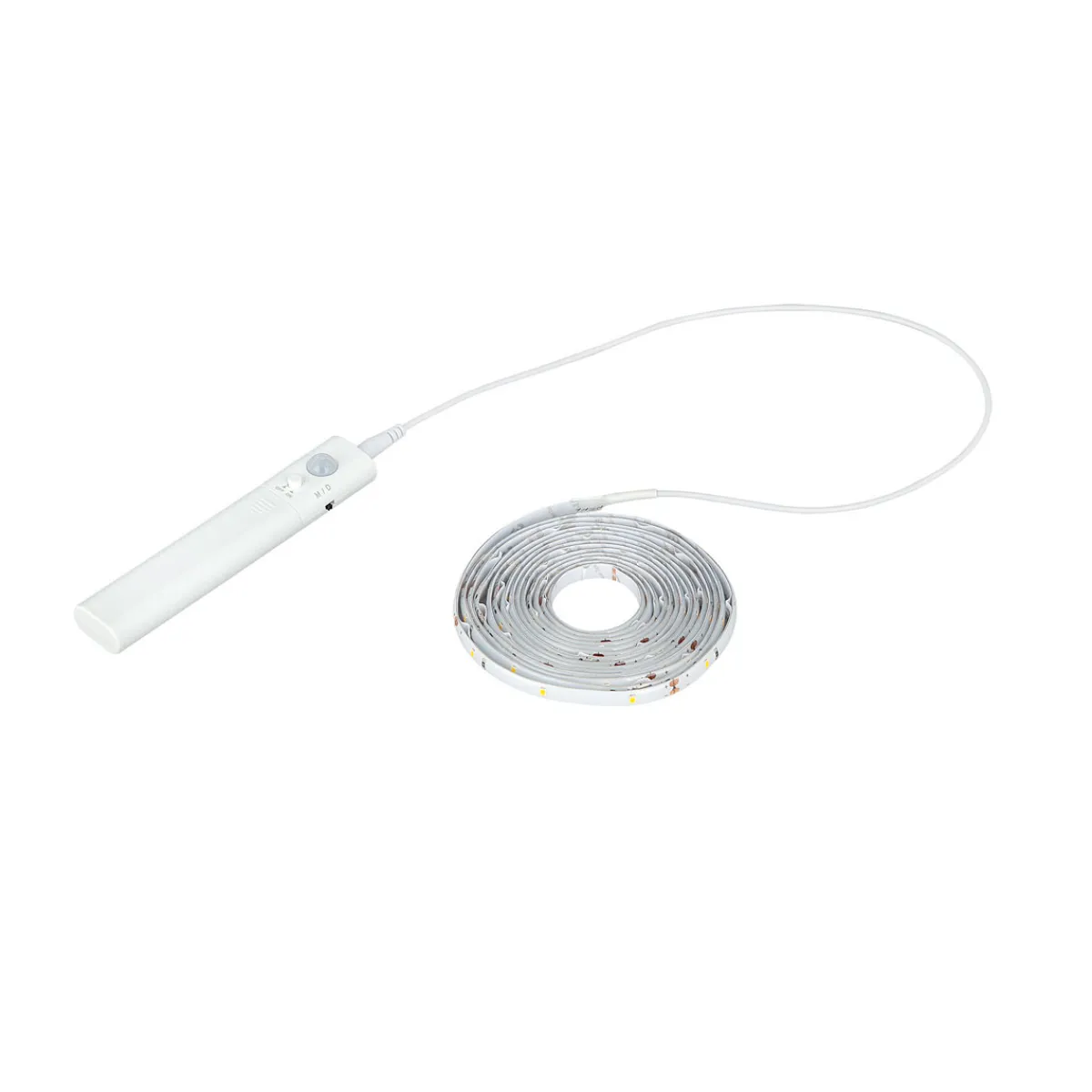 LxB ca. 300×0,8 cm, Kunststoff, warmweiß, selbstklebend, batteriebetrieben, für 4x 1,5-VAAA Batterien (exkl.), wahlweise Sensor- oder Dauerbetrieb, Sensorerfassungswinkel 110°, Sensorreichweite ca. 3 m, 0,5 m Zuleitung.