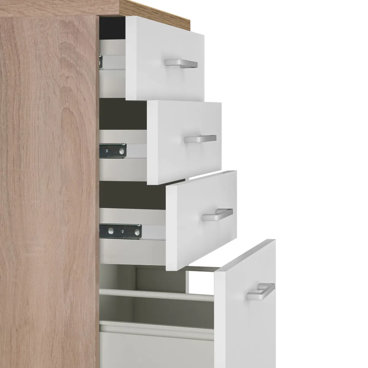 Der Flex-Well Küchenunterschrank Samoa vereint modernes Design und praktische Funktionalität, um Ihre Küche zu bereichern. Mit seiner eleganten Kombination aus weißem Finish und Sonoma Eiche Nachbildung strahlt er zeitlose Schönheit aus. Die drei geräumigen Schubladen bieten ausreichend Platz für Küchenutensilien, während der zusätzliche Auszug unten perfekt für größere Gegenstände geeignet ist. Dieser Unterschrank ist nicht nur ein optisches Highlight, sondern auch ein zuverlässiger Helfer im Alltag.
