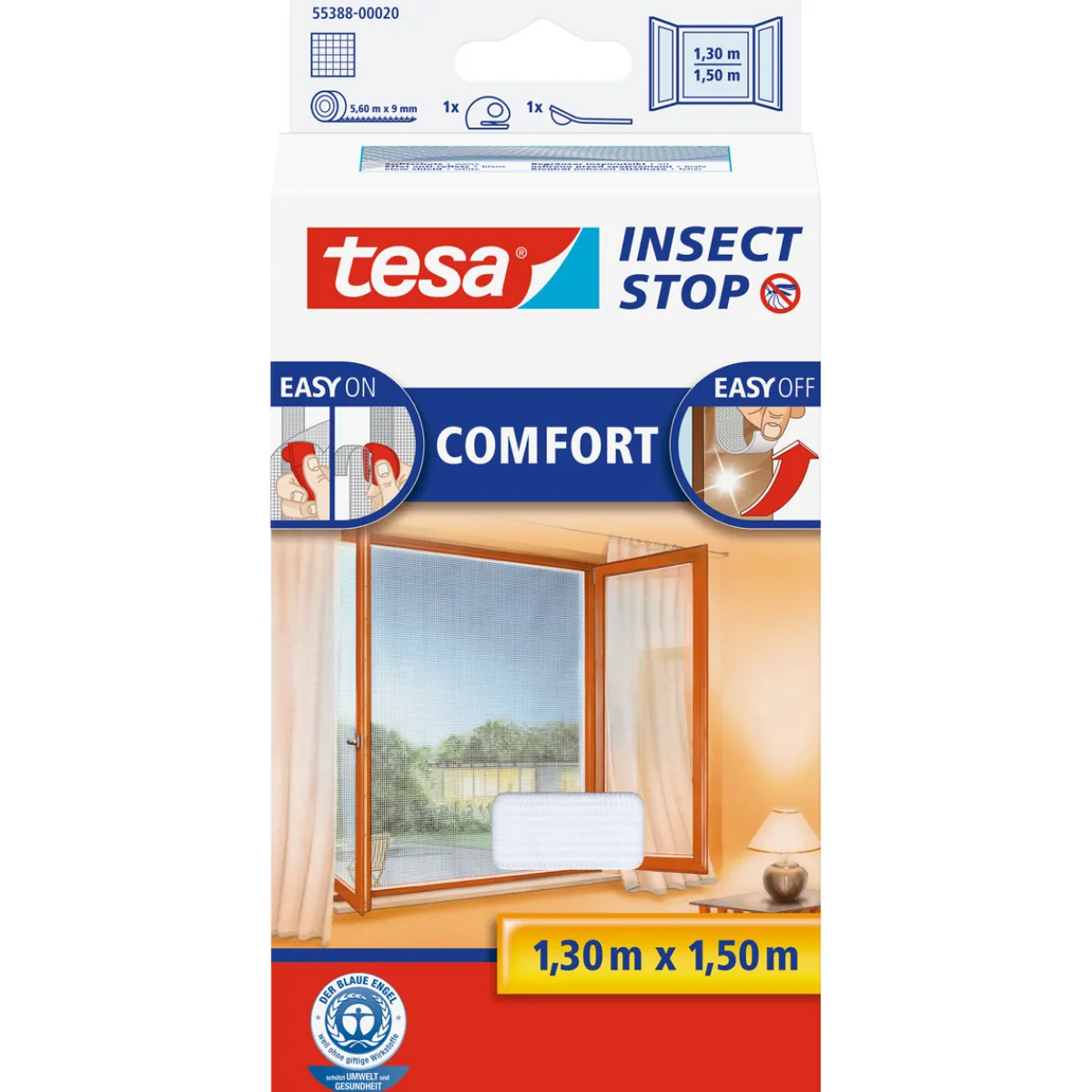 Tesa Fliegengitter Comfort 130 x 150 cm weiß für Fenster mit Klettband
