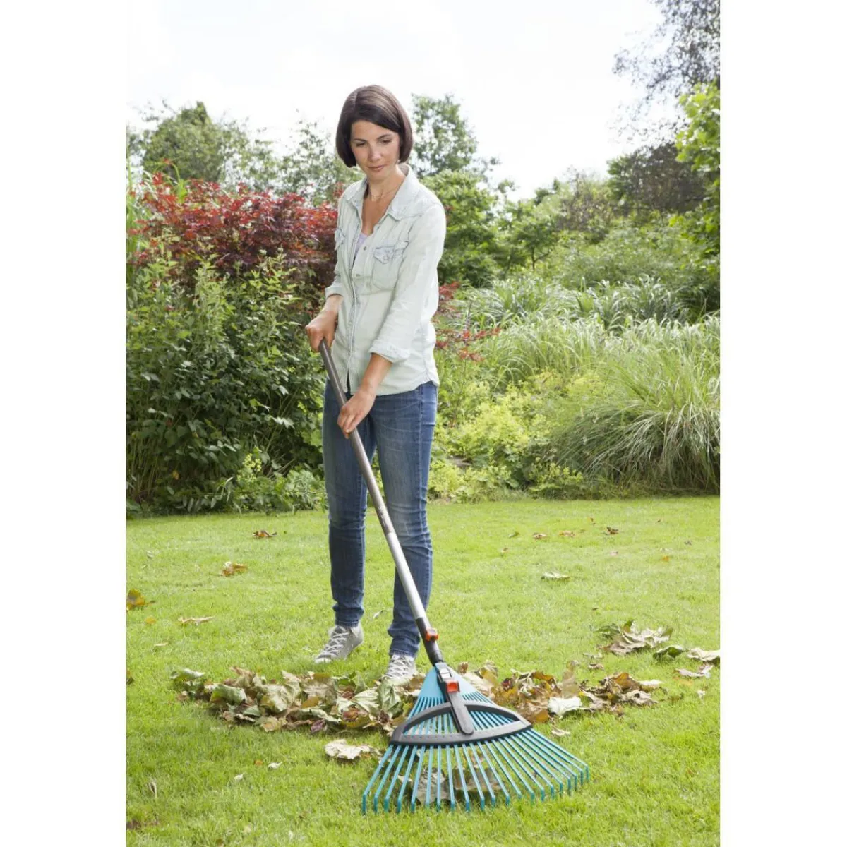 Mit dem Gardena Combisystem-Verstellbesen aus hochwertigem Kunststoff wird das Zusammenfegen von Laub, Grasschnitt und anderen Gartenabfällen zum Kinderspiel. Die verstellbaren Zinken in sechs Stufen ermöglichen eine maximale Arbeitsbreite von 52 cm und machen den Besen zu einem vielseitigen Werkzeug.
