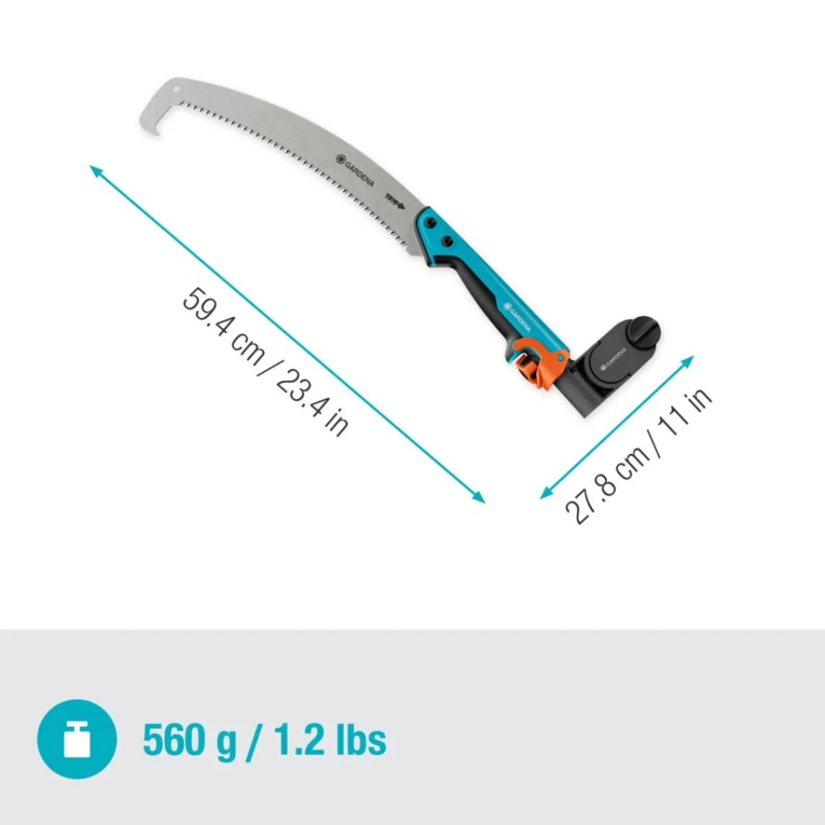 Starke Performance – einfache Handhabung. Dieser Sägeaufsatz für GARDENAs Baum- und Strauchschneider StarCut Pro L ist die clevere Lösung zum Sägen in verschiedenen Höhen und so viel mehr als nur eine Säge. Mit einer Klinge aus Qualitätsstahl, dreifach geschliffenen Präzisionszähnen und Anti-Rutsch-Haken lässt er sich mit StarCut Pro oder unabhängig als Handsäge einsetzen. Einfache One-Click-Verbindung Säge und Adapter lassen sich mit einem einzigen Click fest und stabil mit StarCut Pro verbinden. Das einsatzbereite, solide, wackelfreie Kombisystem sorgt bei Einsatz in der Höhe für Schneidleistung und Präzision. Starke Kraft Mit einer Klinge aus Qualitätsstahl und dreifach geschliffenen Präzisionszähnen sorgt dieser Sägeaufsatz für müheloses Sägen unabhängig davon, ob er für sich allein oder in Verbindung mit GARDENA StarCut Pro L benutzt wird. Saubere Schnitte Die Kombination aus hochwertigem Stahl, dreifach geschliffenen Zähnen und dem stabilen, wackelfreien Aufsatzsystem trägt dazu bei, in der Höhe präzise zu sägen, und der kompakte Aufsatzkopf lässt problemloses Sägen am Astansatz zu. Dank des Anti-Rutsch-Hakens ist präzises und sicheres Sägen möglich. Intuitive Ergonomie Dieser Sägeaufsatz für GARDENA StarCut Pro L ist auf Benutzerkomfort und Handhabbarkeit ausgelegt unabhängig davon, ob er als Handsäge oder zum Sägen in der Höhe mit StarCut Pro eingesetzt wird. Lang anhaltende Schärfe made in Germany Die Klingen der Säge StarCut sind in Deutschland nach den anspruchsvollen Standards von GARDENA hergestellt und auf dauerhafte Schärfe ausgelegt, um Jahr für Jahr Präzisionssägearbeit zu ermöglichen.