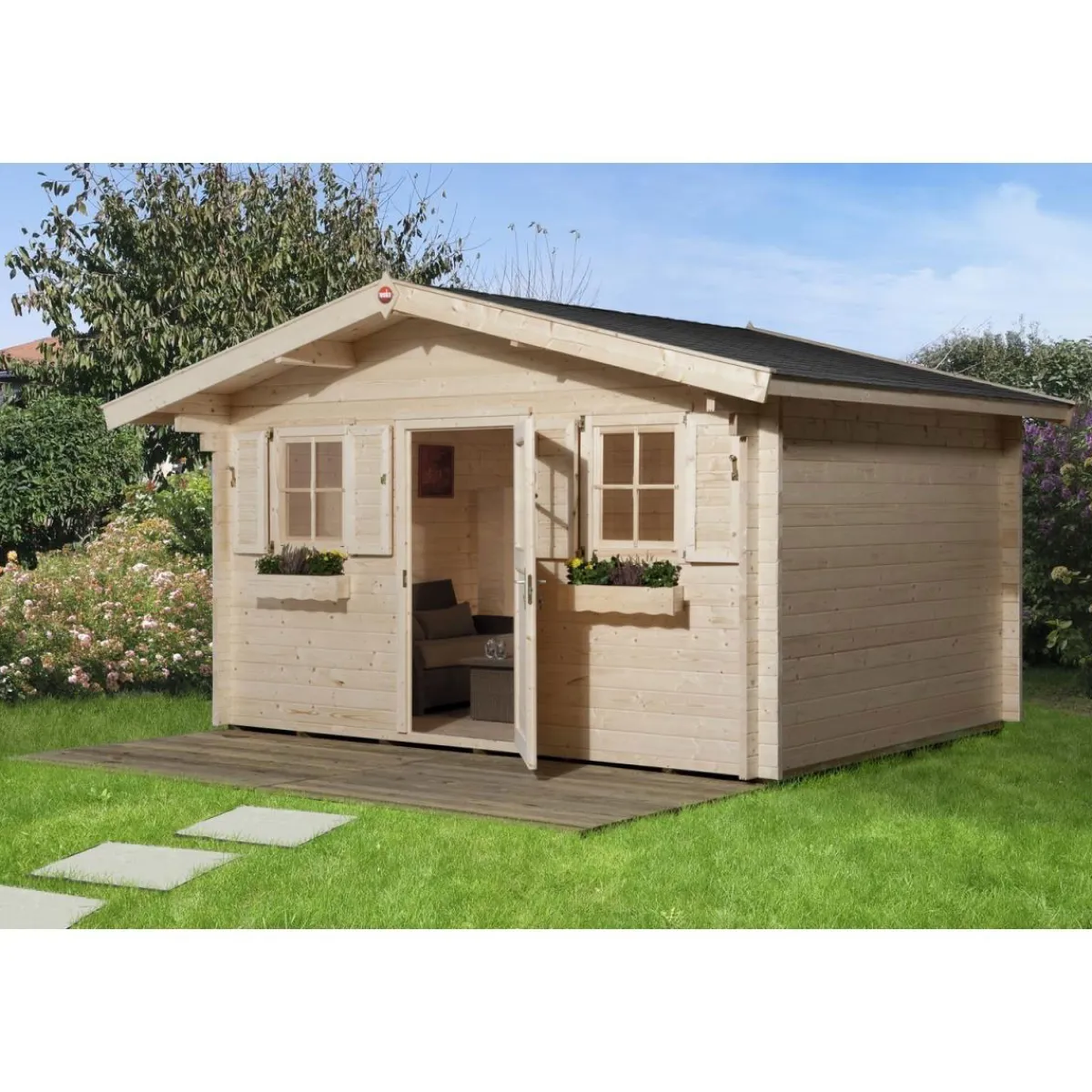- Bodenplatte nicht enthalten, aber inklusive Fußboden aus Massivholzbrettern;