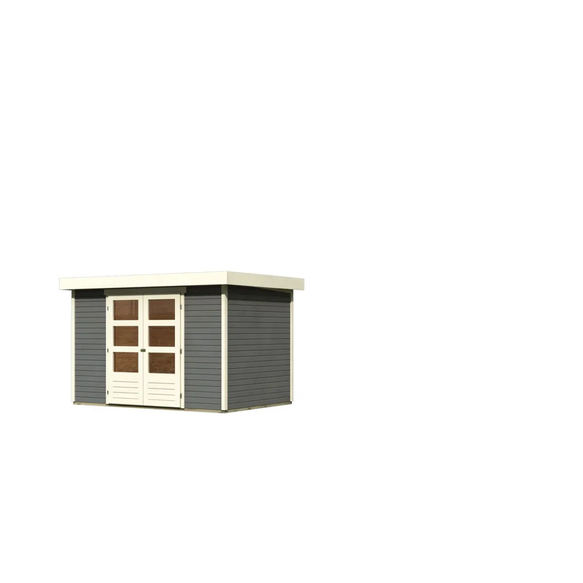 Das Gerätehaus ist aus Holz gefertigt und verfügt über ein Flachdach. Das schöne an diesem Material ist, dass es für ein gutes Raumklima sorgt und als nachwachsender Rohstoff ökologisch ist. Mit der Farbe Grau kommt das Modell in einer gleichermaßen einladenden wie zeitlosen Farbe.