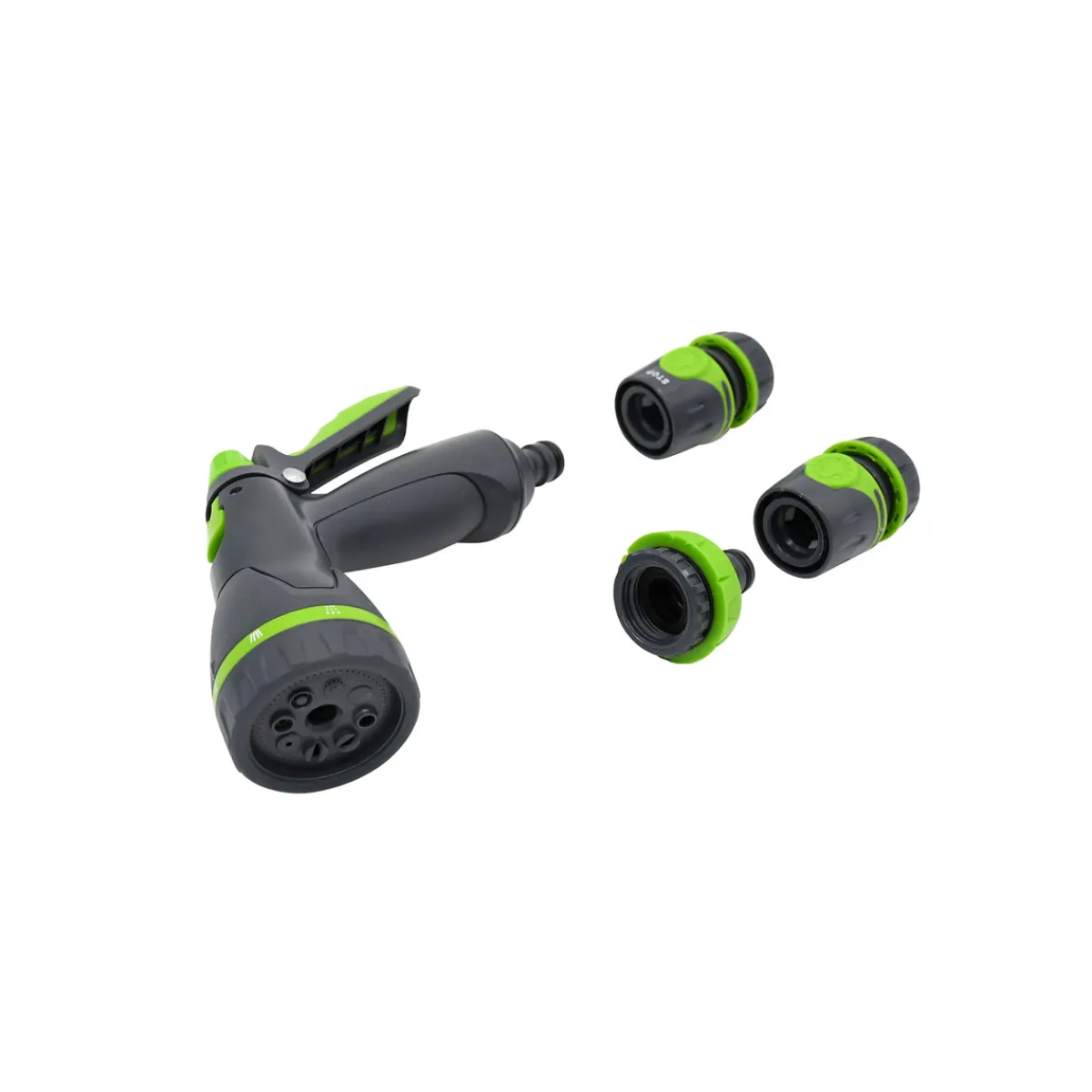 - Lieferumfang: 1x Gartenschlauch, 1x Gießbrause, 2x Anschlüssstück, 1x Schraubanschluss