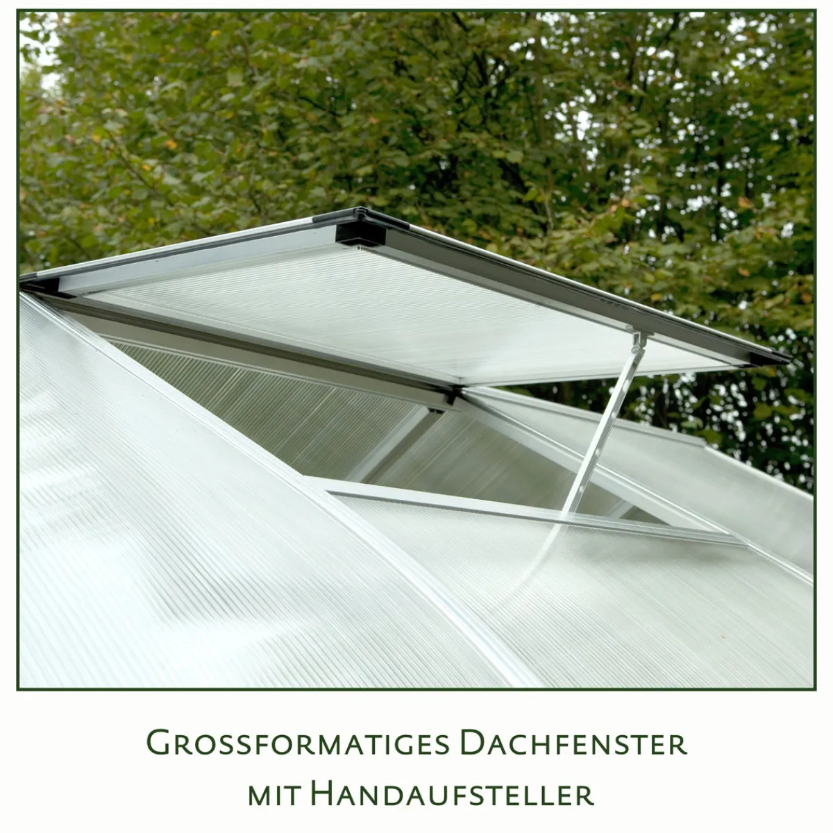 - Satteldachform: Klassisches Design kombiniert mit hoher Schneelast-Beständigkeit bis zu 85 kg/m².