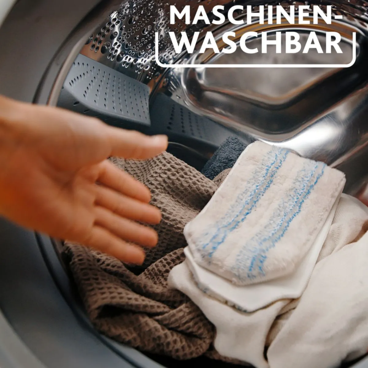 - Abnehmbarer 1,2 L Frischwassertank spart bis zu 75% Wasser** und reinigt bis zu 60m²