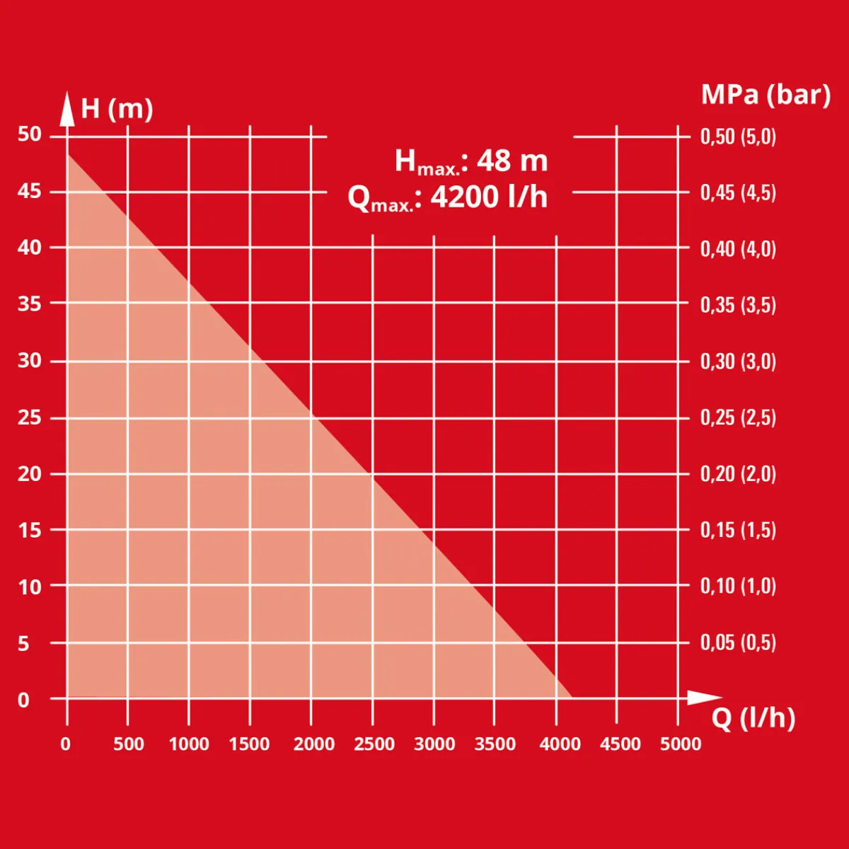 - Maximale Fördermenge von beeindruckenden 4200 Litern pro Stunde für effiziente Wasserversorgung