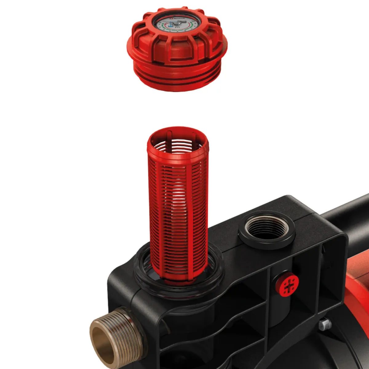 - Vorfilter mit Rückschlagventil hält Schmutzpartikel zurück und verlängert die Lebensdauer des Geräts deutlich