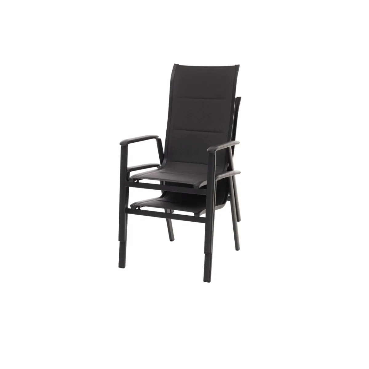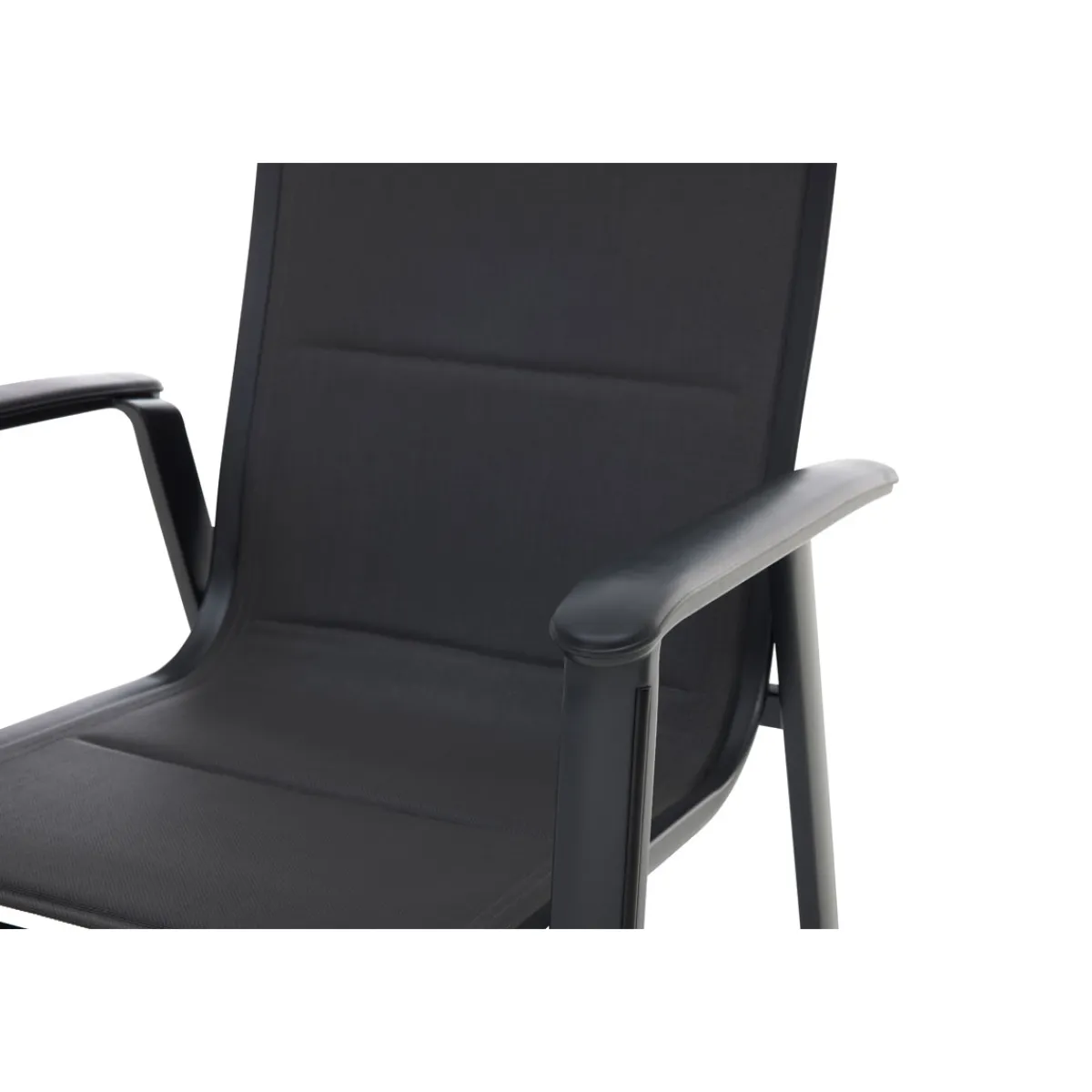 - Schwarze Kunststoffauflage auf den Armlehnen für einen stilvollen Akzent