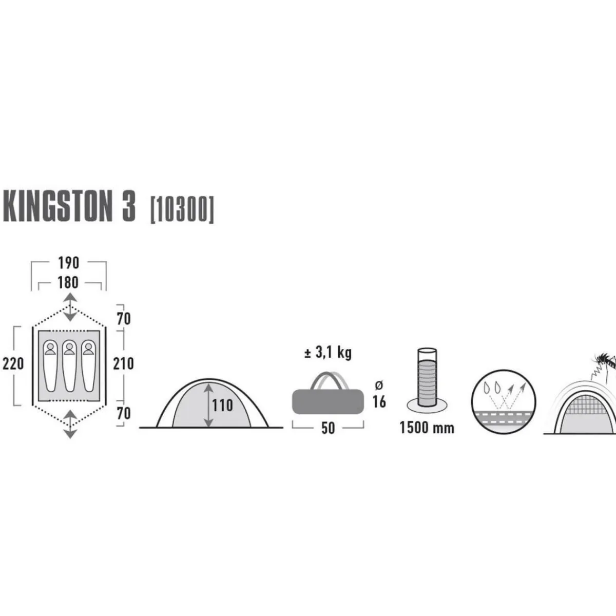 Das High Peak Zelt Kingstone 3 ist perfekt für alle Kunden, die gerne Zeit in der Natur verbringen und dabei nicht auf Komfort verzichten möchten. Es eignet sich ideal für Campingausflüge mit Freunden oder der Familie.