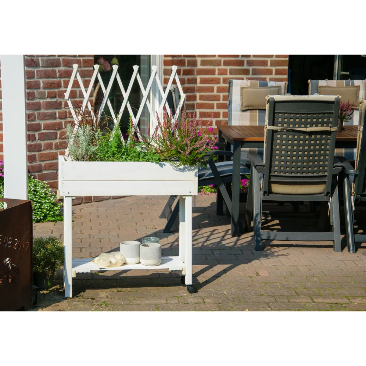Träumen Sie von einem grünen Paradies direkt vor Ihrer Tür? Das dobar Hochbeet mit Rankhilfe macht es möglich! Mit seinem eleganten weißen Design aus wetterfest lasiertem Fichtenholz und der praktischen Rollfunktion ist dieses Stelzenhochbeet nicht nur ein Blickfang, sondern auch unglaublich vielseitig. Ob auf dem Balkon, im Garten oder auf der Terrasse – das rollbare Hochbeet passt sich Ihren Bedürfnissen an und bringt Ihre Pflanzen zum Strahlen. Die integrierte Rankhilfe eröffnet Ihnen kreative Gestaltungsmöglichkeiten mit Kletterpflanzen, während die großzügige Ablagefläche Platz für Ihre Gartengeräte bietet. Lassen Sie Ihrer Kreativität freien Lauf und verwandeln Sie jeden Außenbereich in eine grüne Oase!