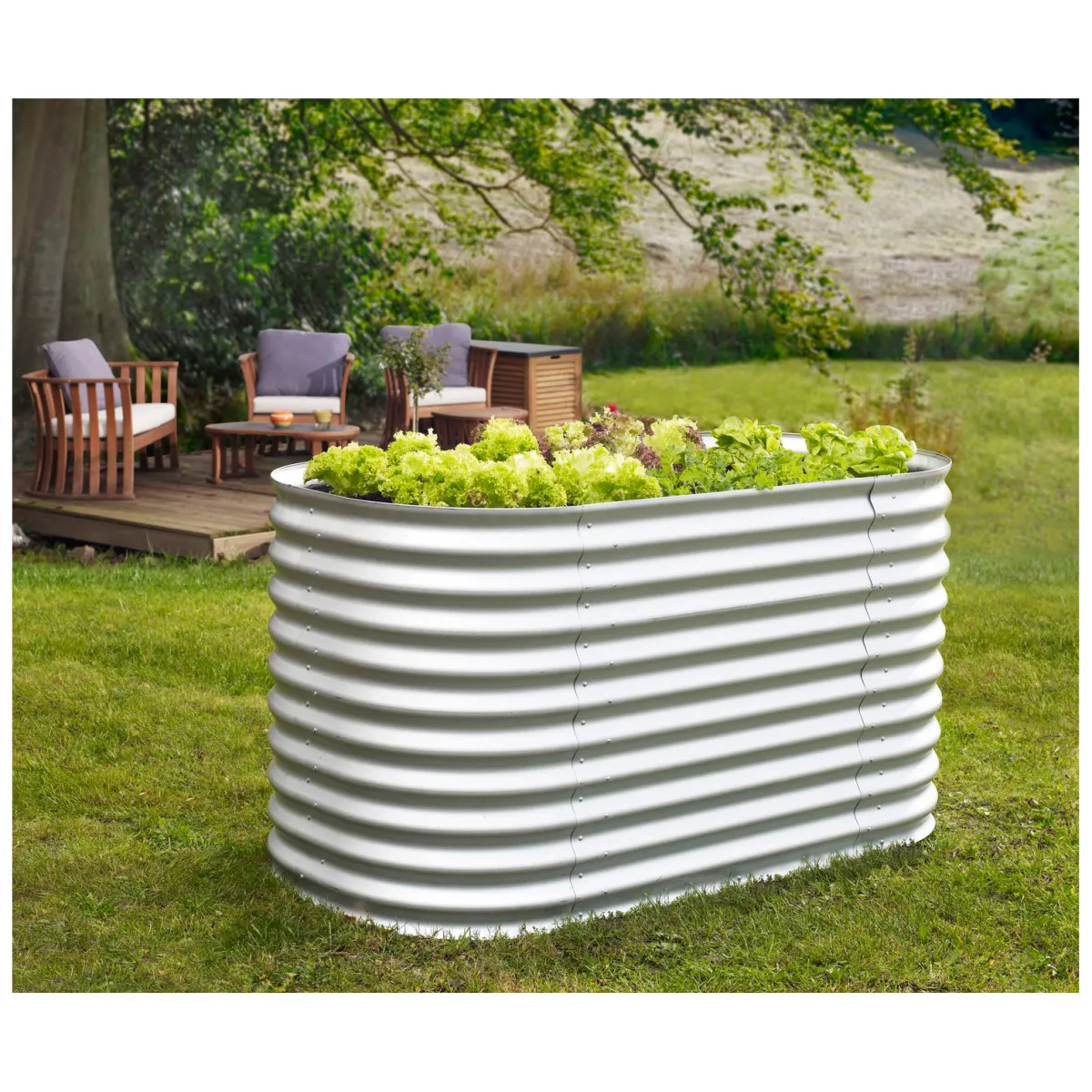 Mit dem Vitavia Hochbeet Terra 858 blank holen Sie sich ein langlebiges und formschönes Element in Ihren Garten. Das ovale Beet aus Zincalume ist nicht nur optisch ansprechend, sondern auch äußerst widerstandsfähig gegenüber Wind und Wetter.