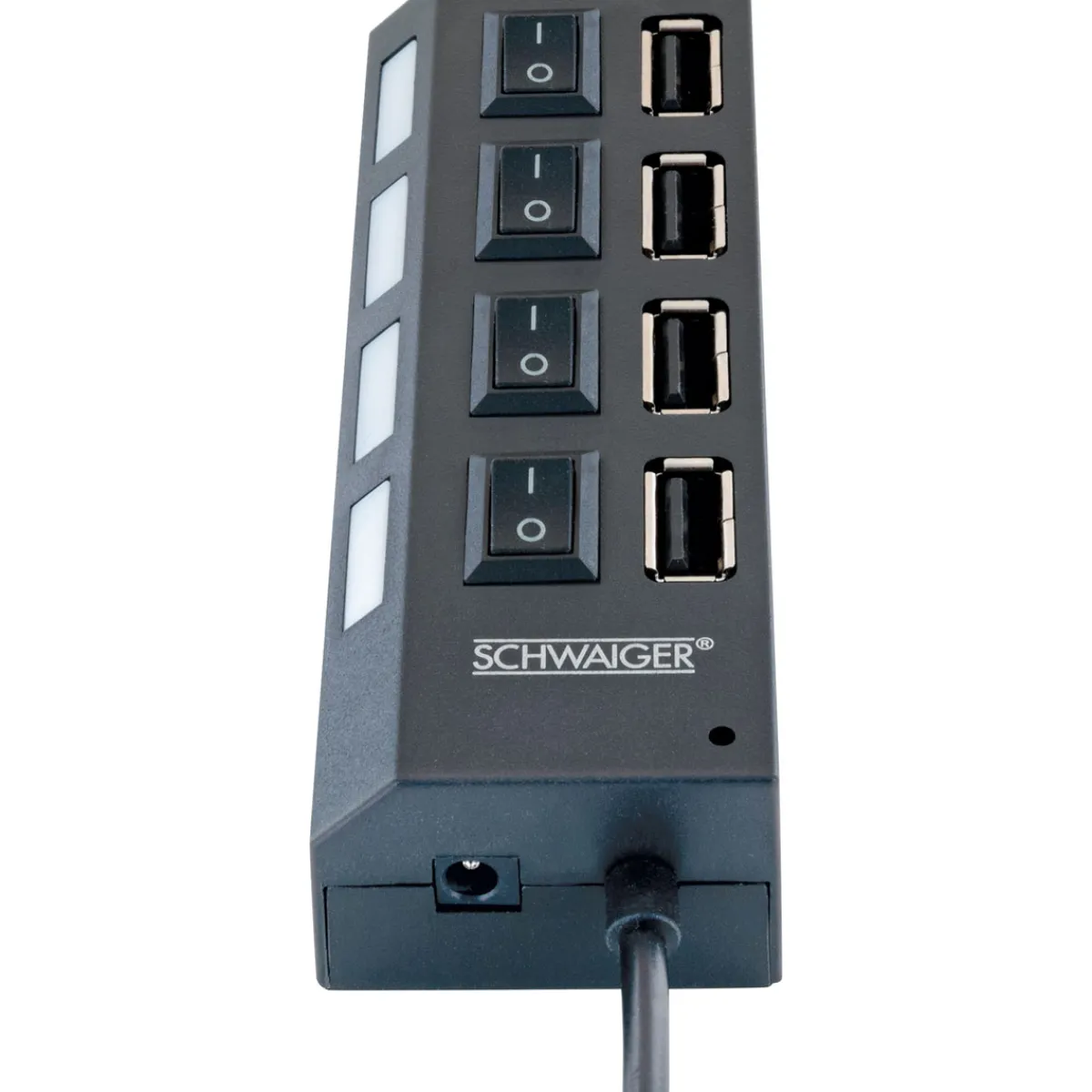 Schwaiger Hub USB 2.0 4-fach schwarz – Ihr praktischer Helfer für den Innenbereich