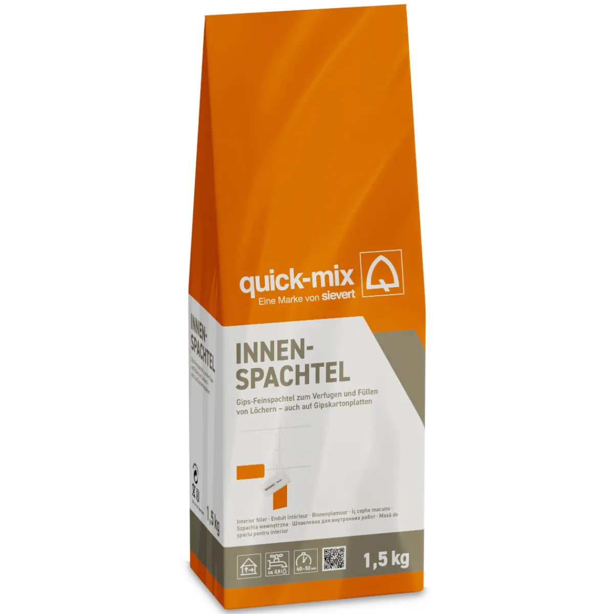 Mit dem Innenspachtel Extraklasse von quick-mix können Sie Ihre Wand- und Deckenflächen spielend leicht plan eben und glatt gestalten. Die Spachtelmasse eignet sich nicht nur zum Verfüllen von Fugen, Löchern und Rissen, sondern auch zum Basteln oder Modellieren.