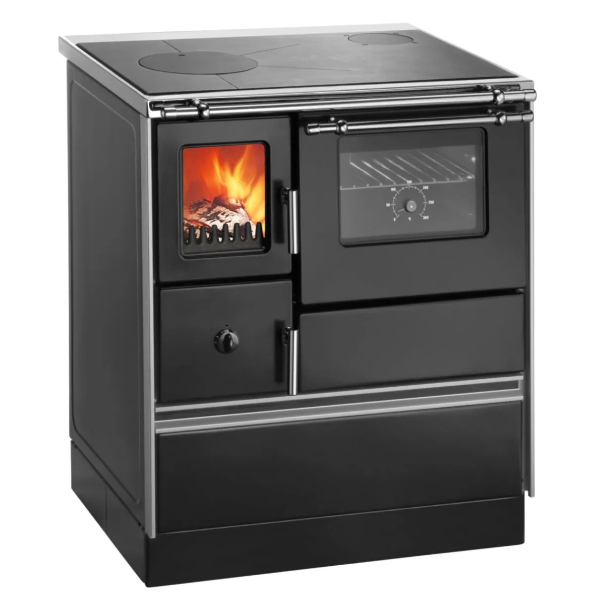 Der K76F-70 Küchenofen in Schwarz vereint elegantes Design mit starker Leistung. Mit 7,6 kW Heizleistung sorgt er für angenehme Wärme und eignet sich ideal zum Kochen und Heizen.