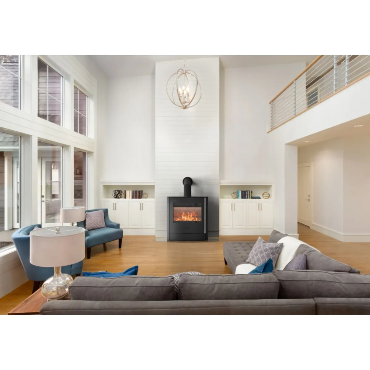 Der Kaminofen Adamis von Fireplace setzt neue Maßstäbe in Design und Funktionalität. Sein extra breiter Feuerraum bietet Platz für Holzscheite mit einer Länge von bis zu 50 cm. Die Auskleidung aus weißen, feuerfesten Dekorsteinen verleiht dem Ofen einen hochwertigen Ausdruck.