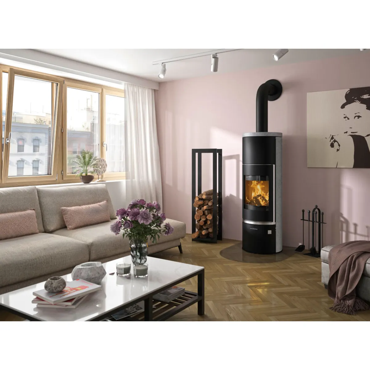 Erleben Sie gemütliche Wärme und ein stilvolles Design mit dem Justus Kaminofen Faro Aqua 2.0. Mit einer Nennwärmeleistung von 8,5 kW und einem Raumheizvermögen von 200 m³ sorgt er für wohlige Temperaturen in Ihrem Wohnraum. Die Verkleidung aus Speckstein verleiht dem Ofen eine rustikale Note, während der schwarze Stahlkontrast für einen modernen Touch sorgt.