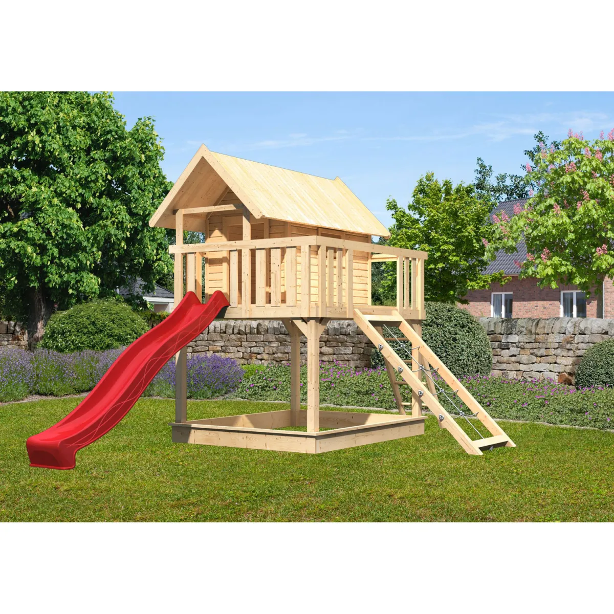 Karibu Fidel inklusive Rampe naturbelassen Rutsche rot