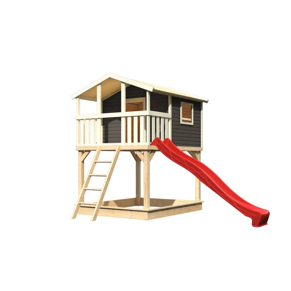 Karibu Stelzenhaus Benjamin terragrau inkl Rutsche rot