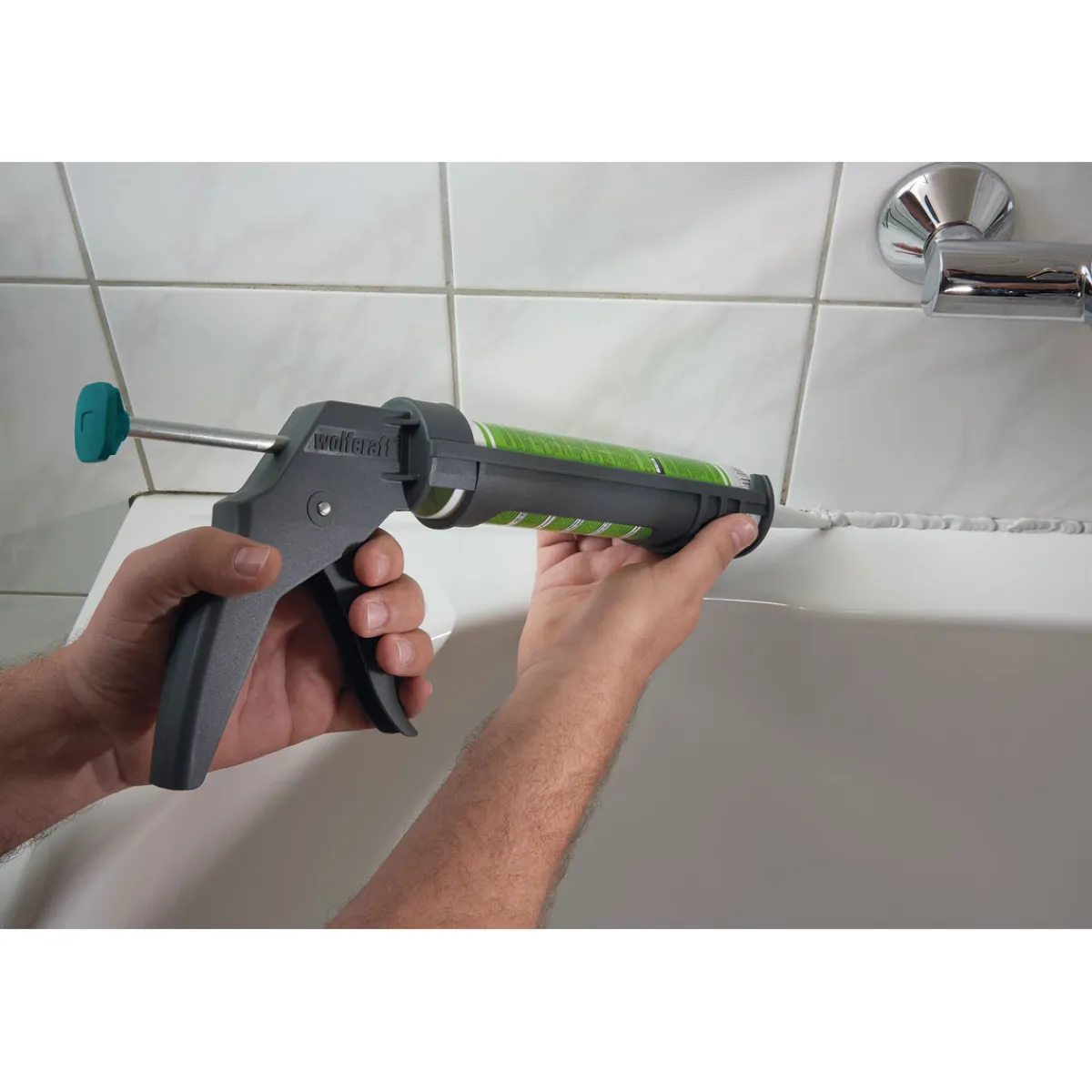 Die Wolfcraft Kartuschenpresse MG 100 ist ideal für alleKunden geeignet, die regelmäßig mit Silikon oder Acryl arbeiten. Ob in der Werkstatt oder im Haushalt – diese praktische Pistole erleichtert das Verarbeiten von Dichtstoffen enorm.