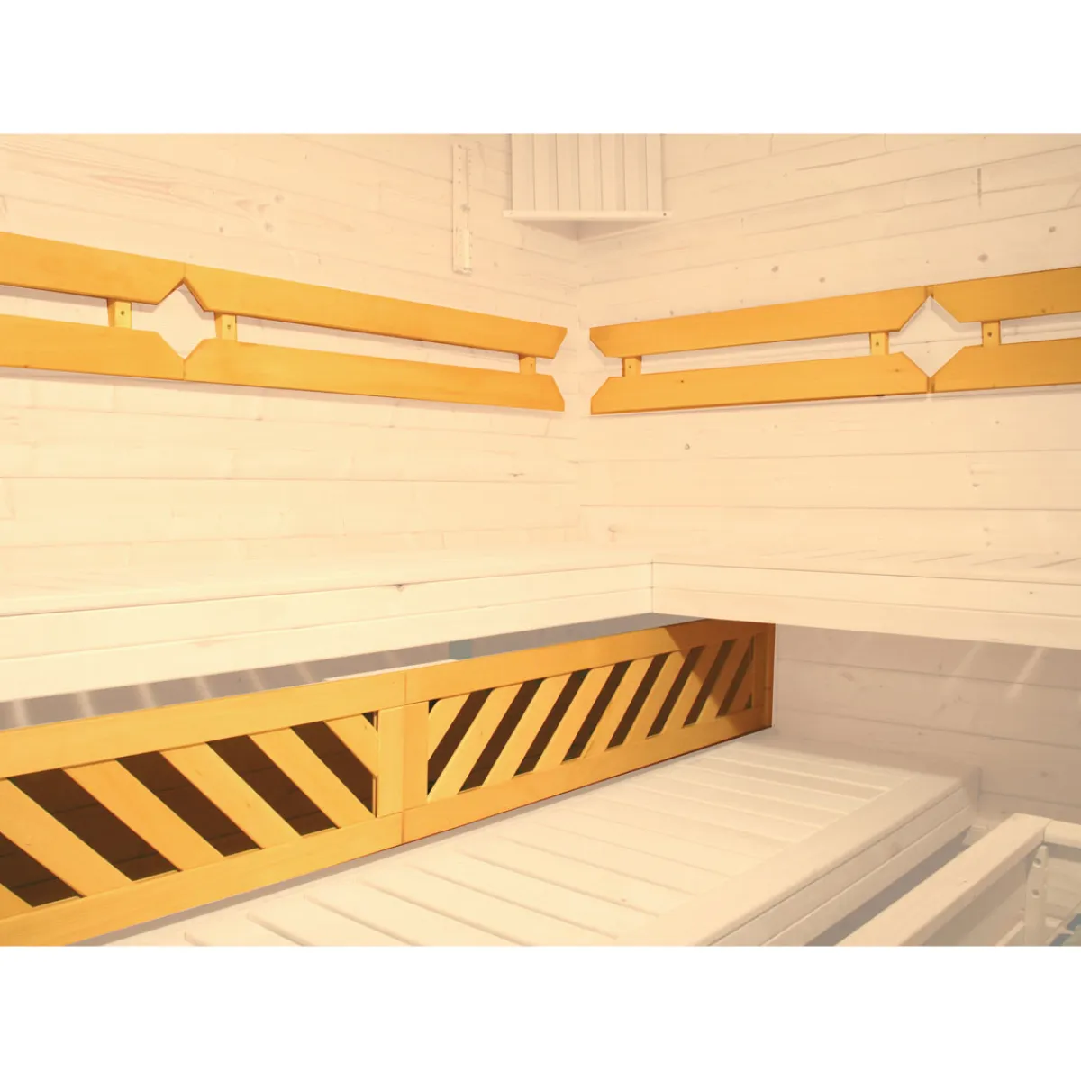 - Zwei ergonomische Rückenlehnen aus hochwertigem Linden- und Pappelholz für optimalen Sitzkomfort in der Sauna