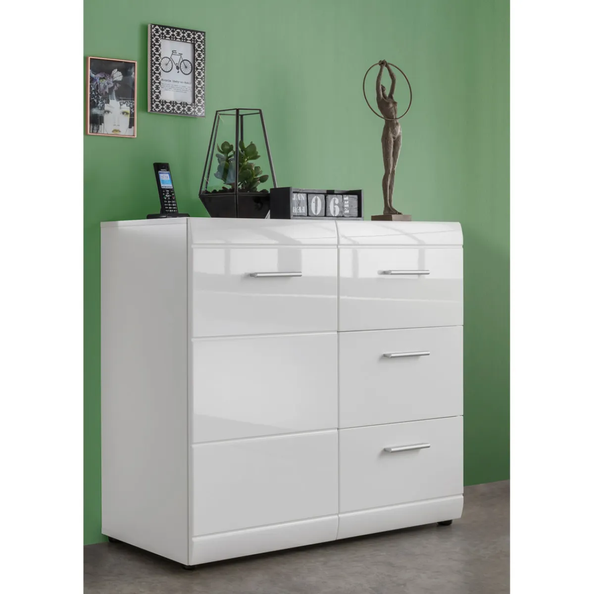 Warten Sie nicht länger darauf, Ihrem Zuhause das gewisse Etwas zu verleihen! Die weiße Hochglanz-Kommode Adison verbindet modernes Design mit praktischer Funktionalität – genau das Richtige für anspruchsvolle Kunden wie Sie. Stellen Sie sich vor: Ihre Lieblingsdeko kommt durch die edlen Fronten noch besser zur Geltung; gleichzeitig haben Sie endlich genügend Platz zum Verstauen Ihrer Habseligkeiten. Bestellen Sie jetzt online beiund machen Sie Ihr Zuhause schöner denn je!