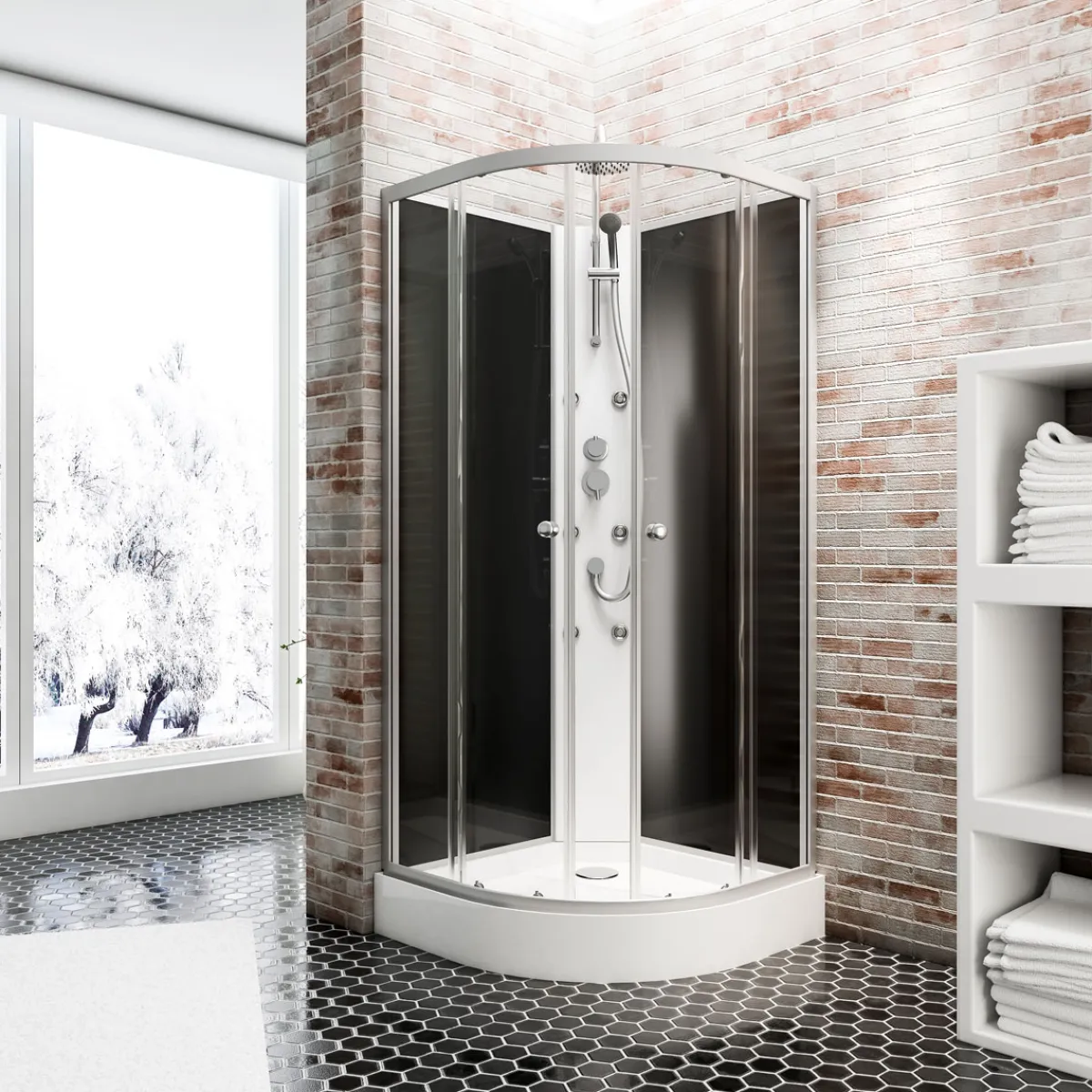 | Lieferumfang: | Duschkabine, Duschbecken+ integrierter Schürze, Siphon/Ablauf ohne Ablaufschlauch, 2 Rückwand, Duschpaneel+ Einhebelmischer, Hand- und Kopfbrause und 6 Massagedüsen, Montagematerial+ Zubehör |