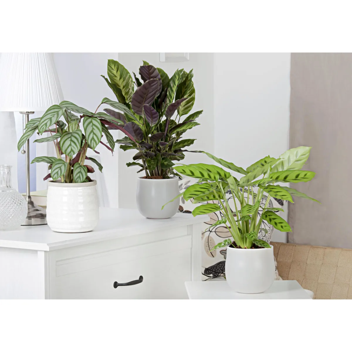 Mit der Korbmarante holen Sie sich ein Stück Tropen nach Hause. Die Calathea ist eine grüne Schönheit, die mit ihren großen Blättern und dem exotischen Muster jeden Raum aufwertet.