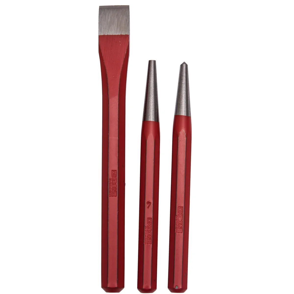 Krone Meißel-/Körner-/Durchschl.satz 3tlg – Für präzises Arbeiten mit Stahl