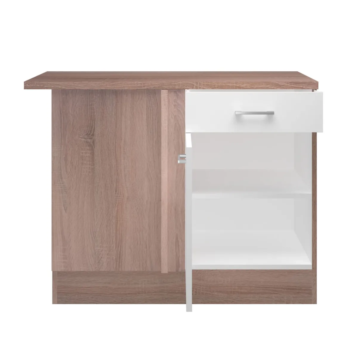 Sie träumen von einer Küche, die nicht nur funktional ist, sondern auch stilvoll und einladend? Der Flex-Well Küchen-Eckunterschrank Samoa in Weiß und Sonoma Eiche erfüllt genau diese Wünsche! Mit seiner eleganten Kombination aus weißer Front und warmem Sonoma Eiche-Dekor bringt er Gemütlichkeit in Ihren Raum. Die hochwertige melaminbeschichtete Oberfläche sorgt dafür, dass der Schrank nicht nur robust ist, sondern auch leicht zu reinigen – perfekt für den Alltag.