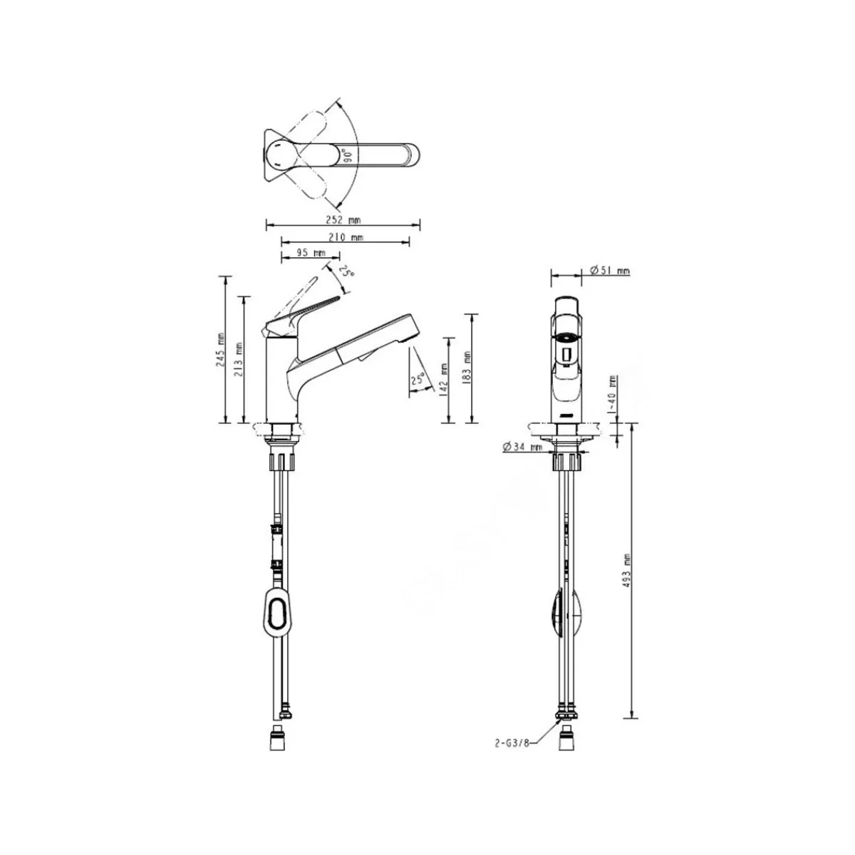 - Lieferumfang: Armatur, Befestigung, Schläuche