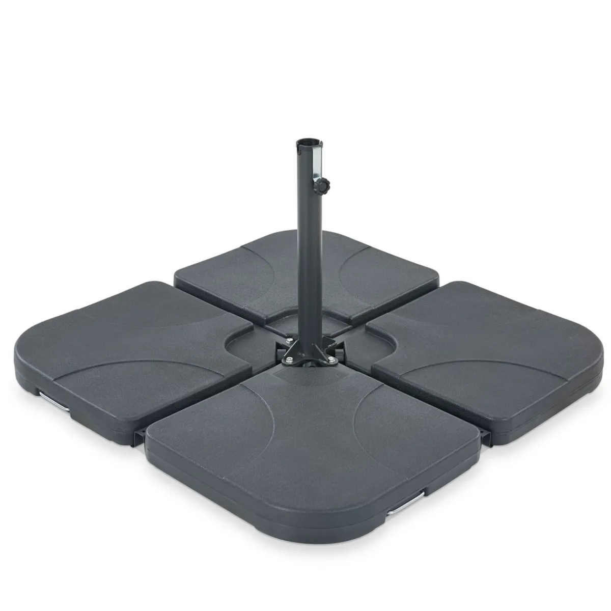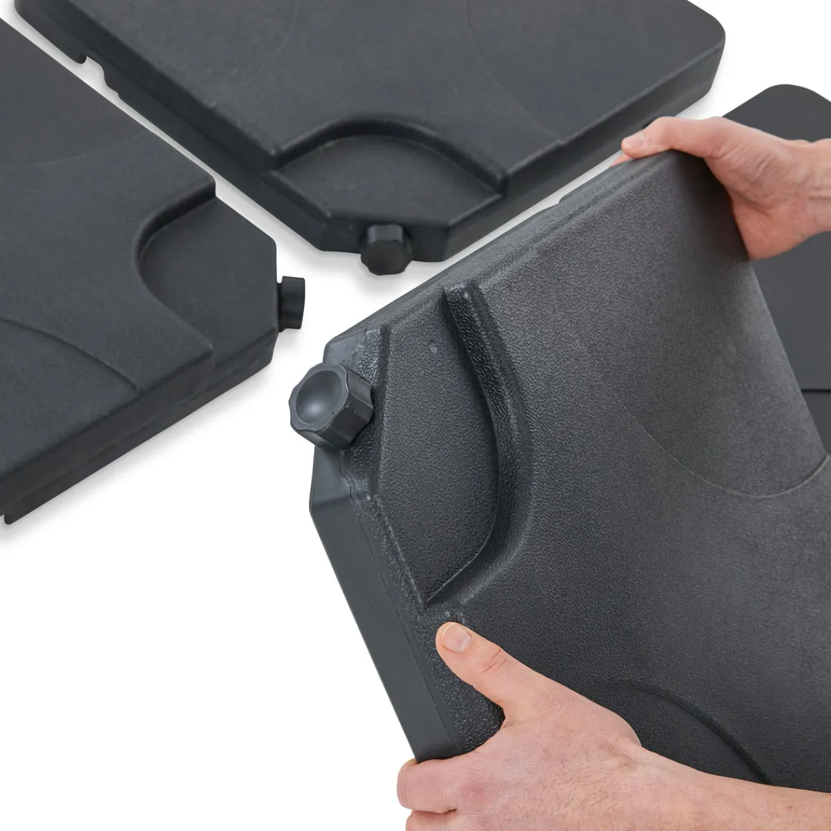 - jede Kunststoffplatte kann mit ca. 15 Litern Wasser oder ca. 20 kg Sand oder Kieseln befüllt werden