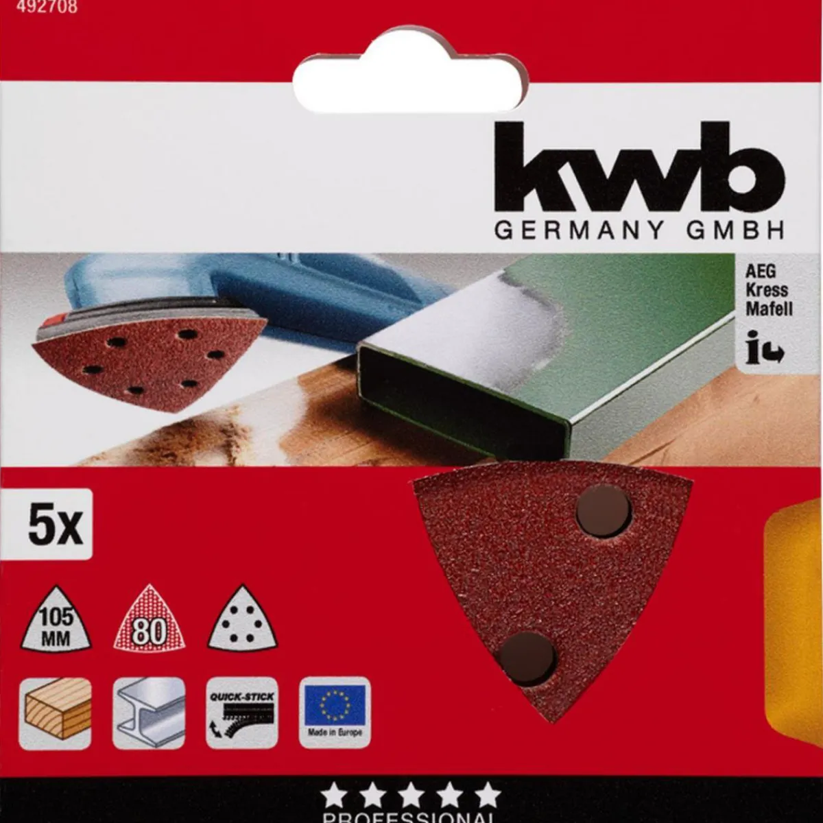 kwb kwb Schleifdreiecke Quick Stick Holz und Metall 105 mm K80