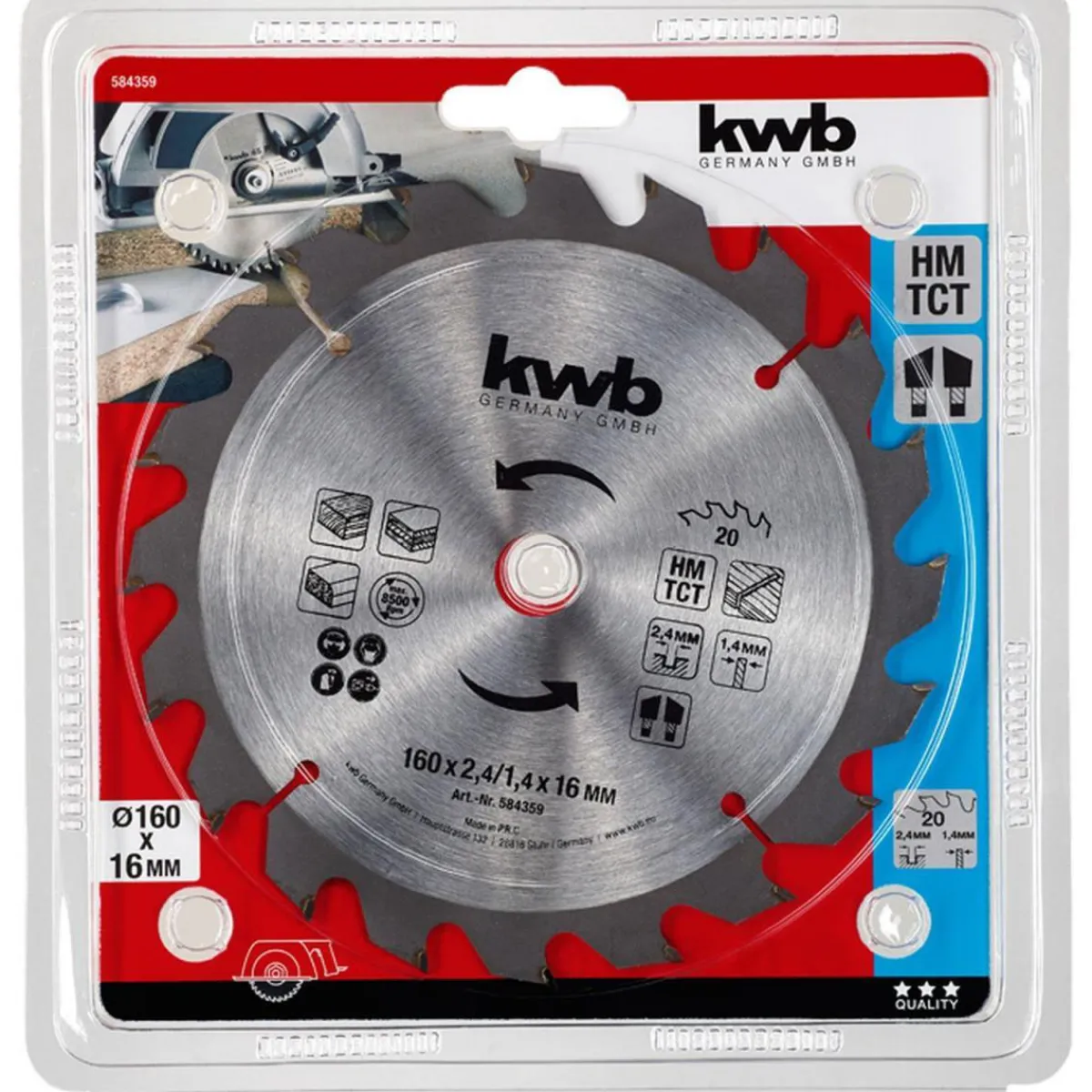 kwb Spanplattensägeblatt für Handkreissäge – Durchmesser 160×16 mm