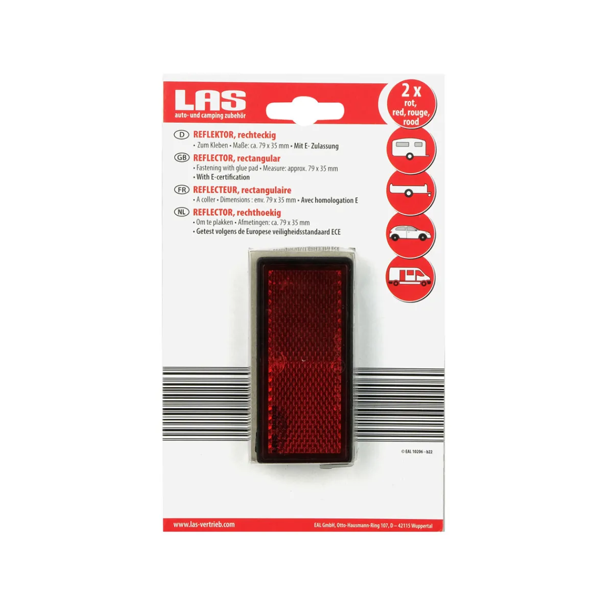LAS 10206 Reflektor rot viereckig 2 Stk.
