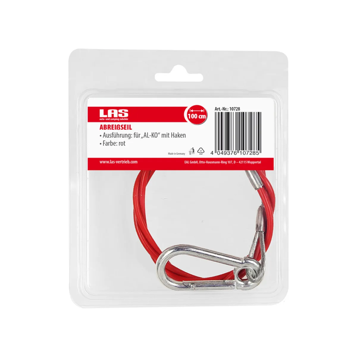 Sorgen Sie für mehr Sicherheit auf der Straße mit dem LAS 10728 Abreißseil für AL-KO Anhänger. Das hochwertige Stahlmaterial und die rote Farbe machen es zu einem unverzichtbaren Zubehörteil für jeden Anhänger.