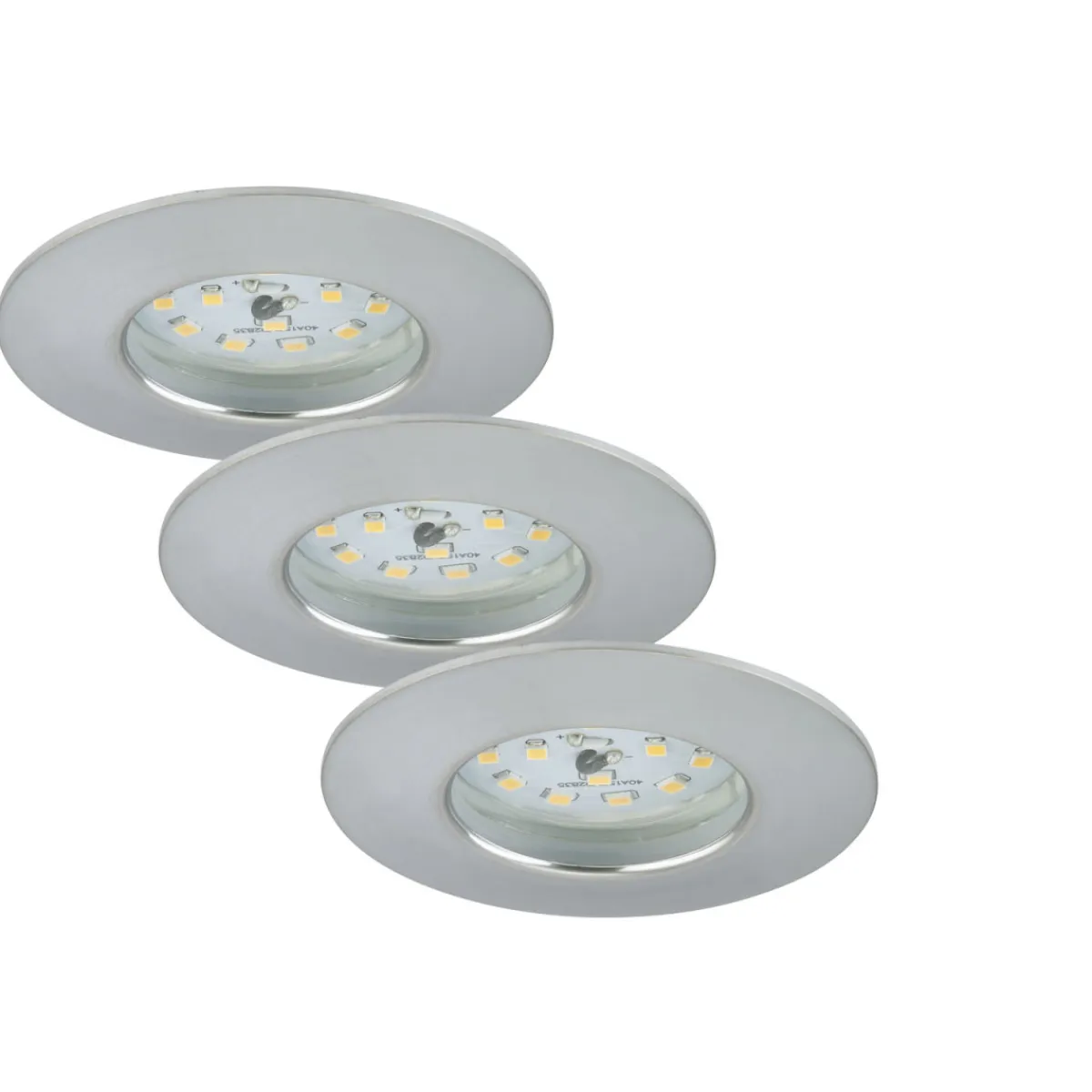 Mit dem Briloner LED-Einbauleuchten-Set ATTACH setzen Sie stilvolle Akzente in Ihrem Schlafzimmer. Das Set besteht aus drei runden Leuchten mit warmweißem Licht und einer edlen aluminiumfarbenen Optik. Die Leuchtmittel sind bereits inklusive und austauschbar.