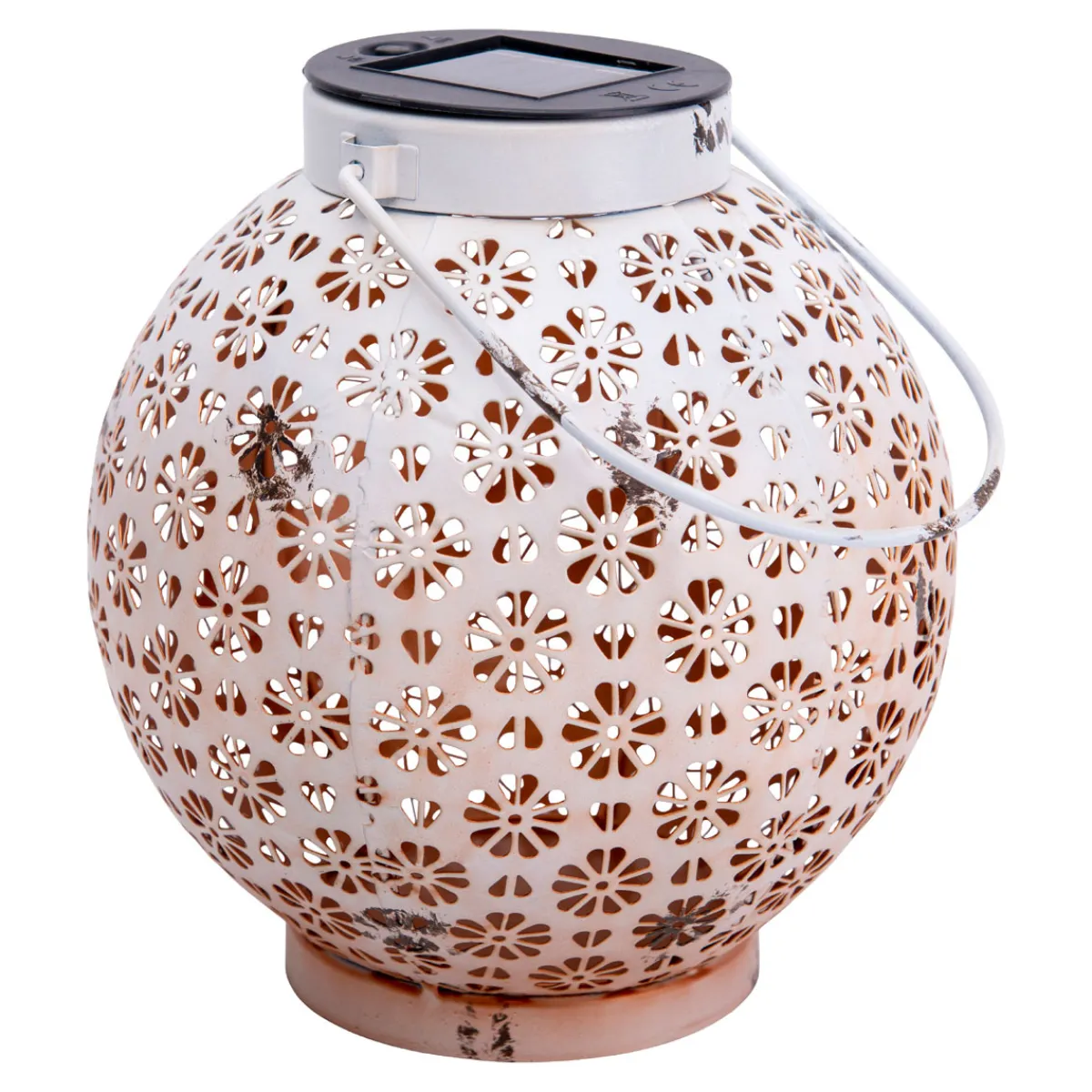 Mit dieser stilvollen Solarleuchte setzen Sie Ihren Außenbereich meisterhaft in Szene. Sie ist die perfekte Wahl, um Ihren Garten oder Ihre Terrasse in ein einladendes Licht zu tauchen. Eine Leuchte im Oriental-Style, die durch ihre gelungene Gestaltung und hochwertige Materialien besticht. Die kugelförmige Form und gemütliche Optik sind hier perfekt vereint. Die Verabeitung von Metall macht die Solarleuchte robust und für alle Beleuchtungsvorhaben im Außenbereich optimal. Weiß unterstreicht die Vielseitigkeit, Anpassungsfähigkeit und Modernität dieser schönen Leuchte. Dieser Artikel hat eine Abmessung von 18 cm Breite, 18 cm Länge und 19,5 cm Höhe. Diese Solarleuchte ist mit 2 hochwertigen LEDs ausgestattet und bietet somit eine ansprechende und energiesparende Beleuchtung. Die Leuchte lässt sich ganz simpel über den Druckschalter ein- und ausschalten. Mit dem zusätzlichen USB-Anschluss können Sie Ihre Geräte leicht und schnell aufladen. Der leistungsstarke Ni-MH AA Akku mit einer Kapazität von 2 x 300 mAh versorgt die Leuchte zuverlässig mit der benötigten Energie. Wie echtes Kerzenlicht sorgt diese Leuchte mit Flammeneffekt für eine freundliche und behagliche Atmosphäre. Mit dem eingebauten Dämmerungssensor sorgt diese Leuchte dafür, dass Sie nie im Dunkeln stehen – sie schaltet sich automatisch ein, wenn es draußen dunkel wird. Die Klasse 3 und die Schutzart IP44 sorgen für idealen Schutz vor Staub und Spritzwasser. Abschließend lässt sich sagen, dass solarbetriebene Außenleuchten nicht nur eine umweltfreundliche und kostengünstige Beleuchtungslösung bieten, sondern auch durch ihre einfache Installation und vielseitigen Einsatzmöglichkeiten überzeugen. Sie tragen dazu bei, den Außenbereich sowohl funktional als auch geschmackvoll ansprechend zu gestalten und leisten gleichzeitig einen wertvollen Beitrag zum Schutz unserer natürlichen Ressourcen.