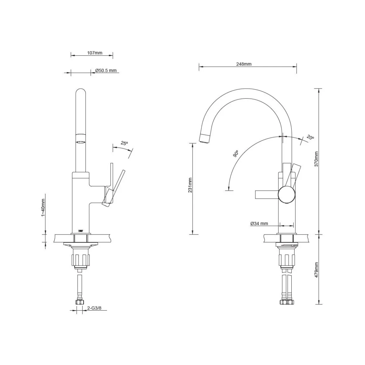 - – Ausführung: Einhebel-Küchenarmatur mit Schnellmontage von unten Quickfix