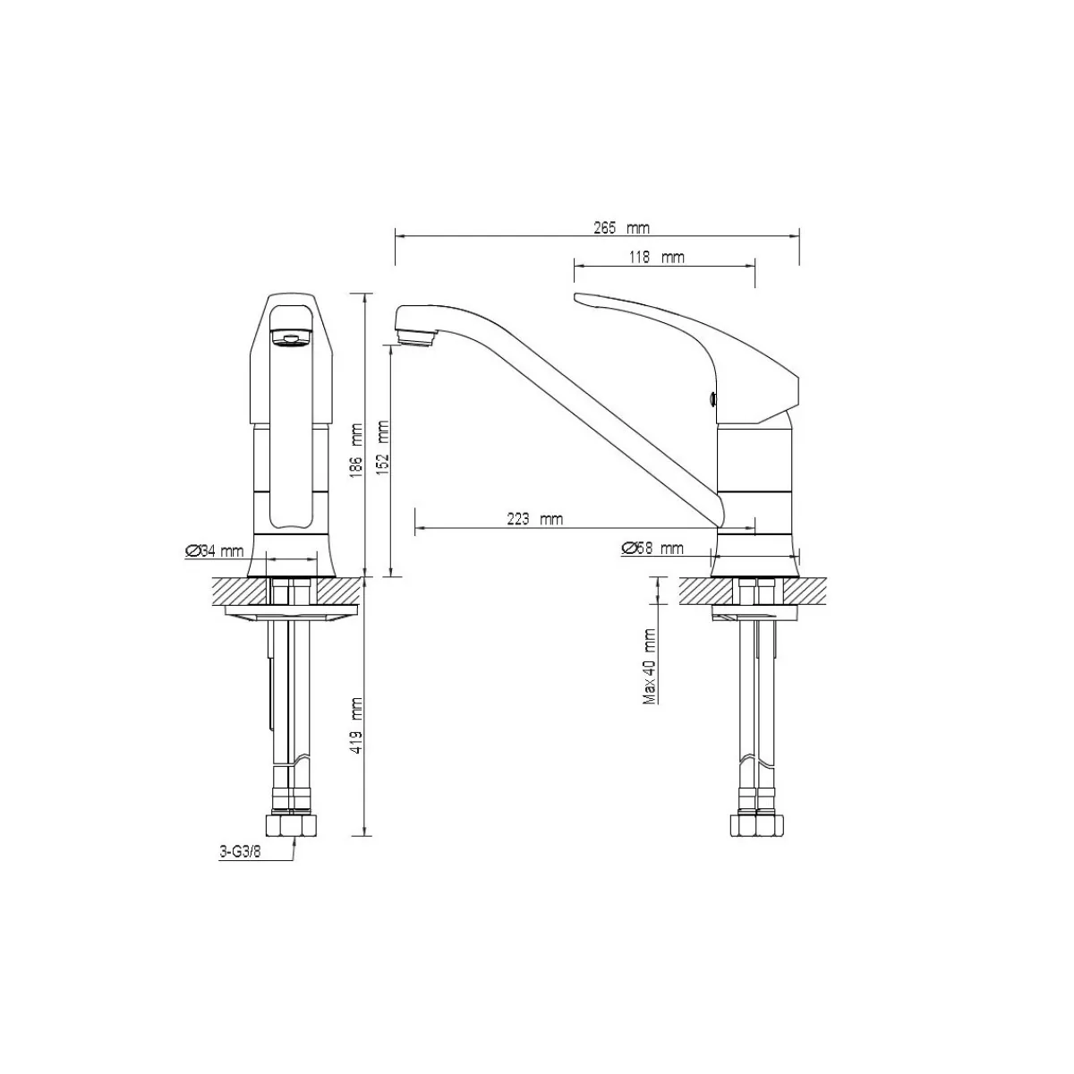 - Ausgestattet mit einer Kartusche 40mm und einem M24x1 AG Perlator/Mischdüse.