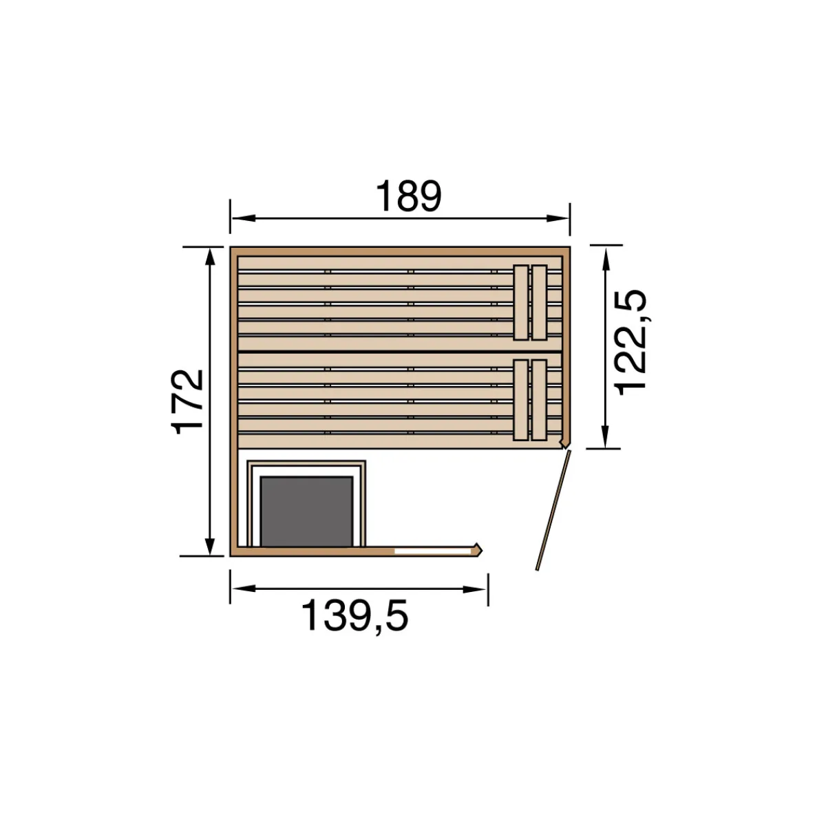 - Lieferumfang: Saunakabine inklusive Montagematerial und ausführlicher Aufbauanleitung, Ofenschutz, zwei Liegen, zwei Kopfstützen und Saunaofen mit int. Strg.