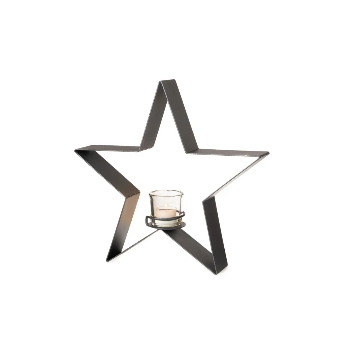 Metallstand Stern mit Teelichtglas anthrazit matt – Stilvolle Deko für Ihr Zuhause