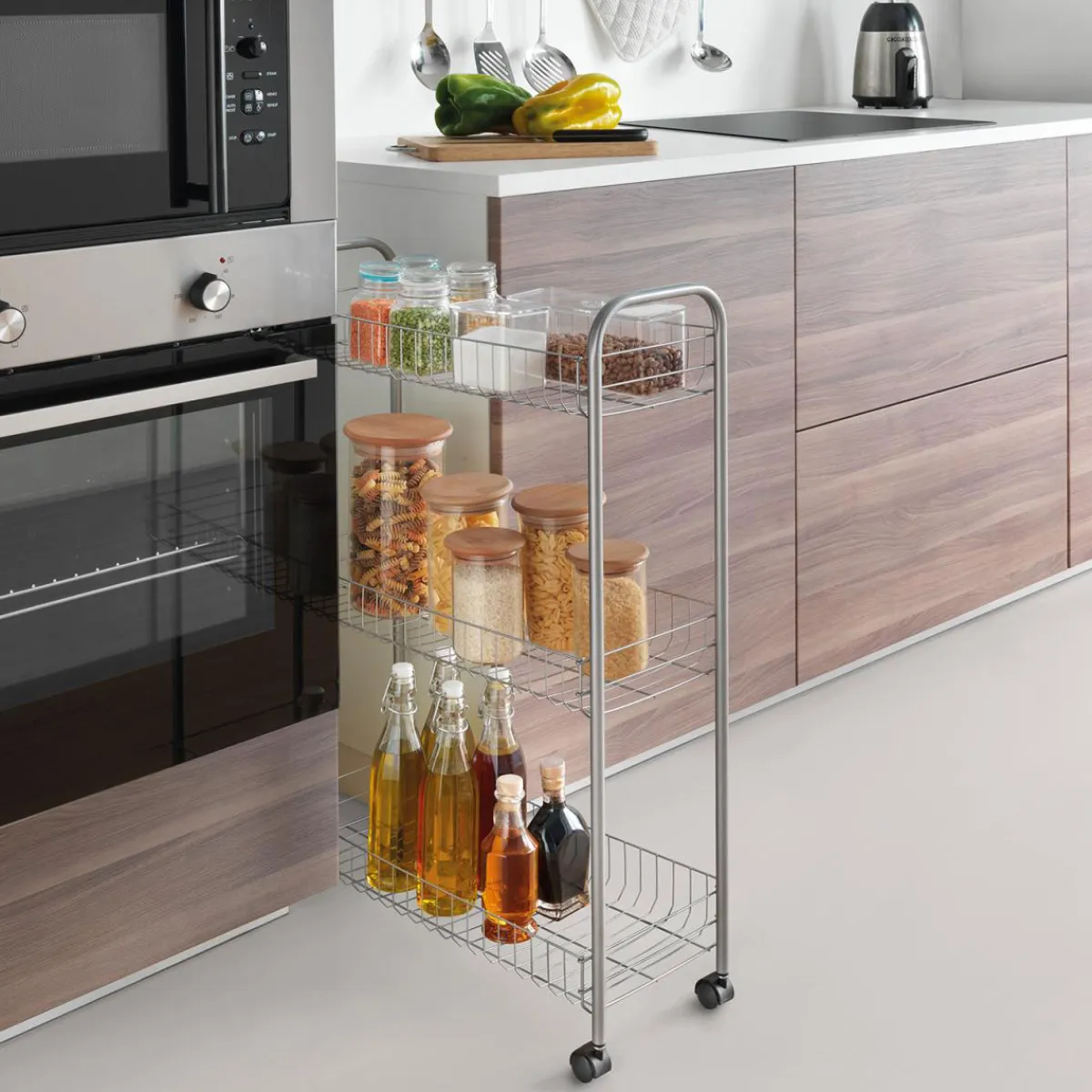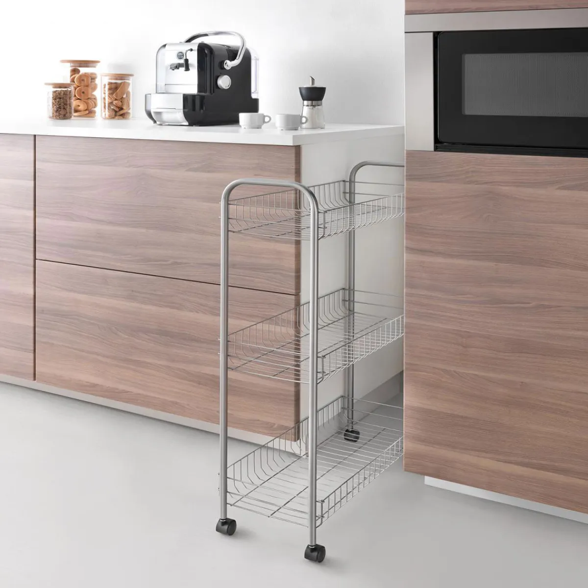 Der Metaltex Allzweckwagen Slim ist ideal für alle, die mehr Ordnung in ihrem Zuhause schaffen möchten. Egal ob als zusätzliche Ablagefläche in der Küche oder als mobiles Regal im Büro – dieser Wagen macht immer eine gute Figur.