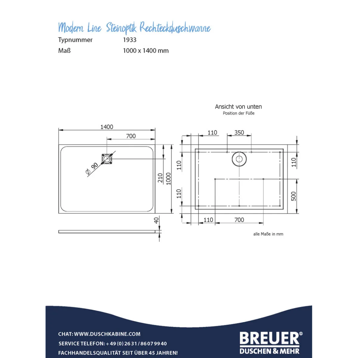 Mineralgruss-Duschwanne Modern Line Steinoptik, Sandstein, 1000 / 1400 mm