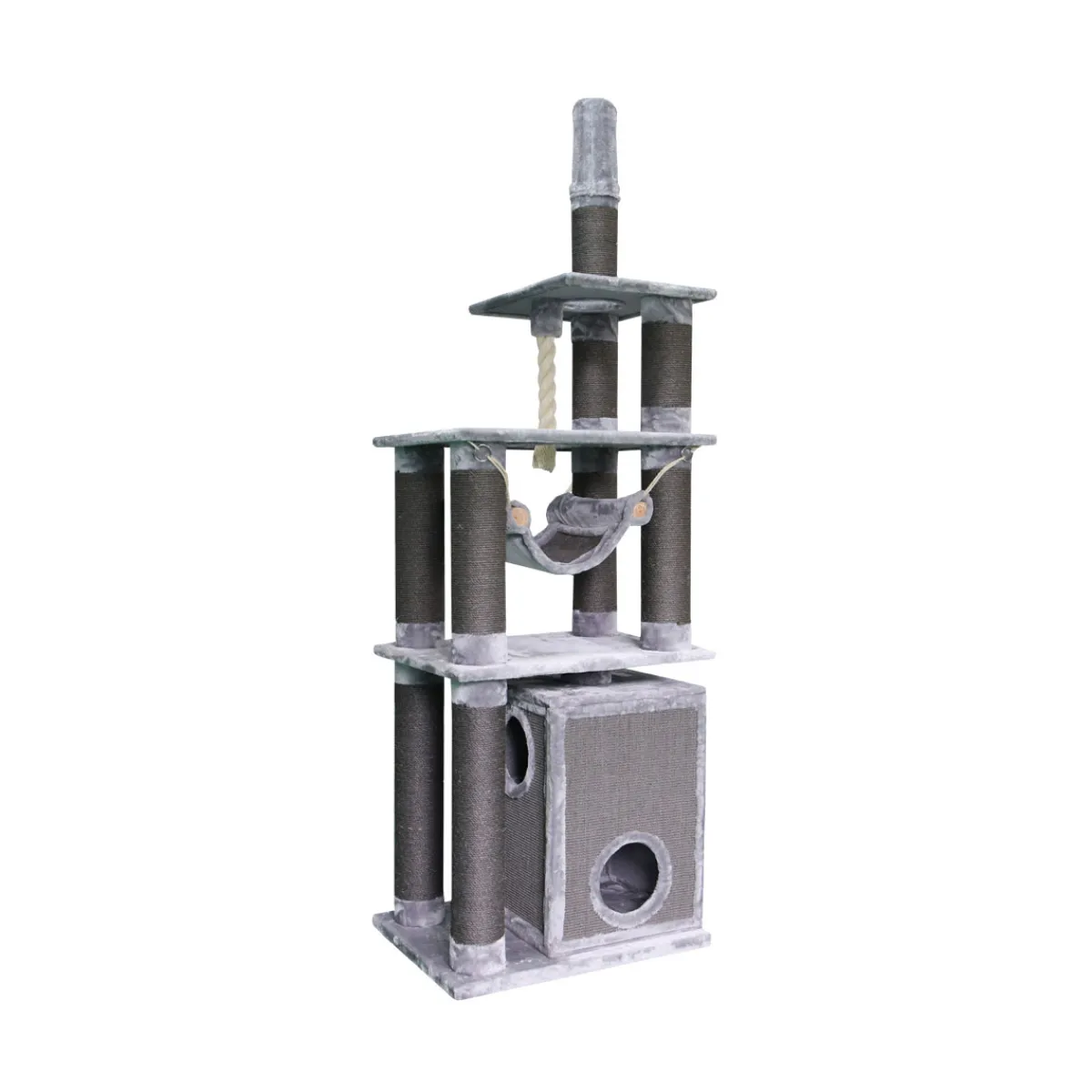 Dieser Kratzbaum ist ideal für alle Kunden, die ihren Katzen ein neues Zuhause geben möchten. Es bietet genügend Platz zum Spielen und Entspannen, während es gleichzeitig stilvoll in jedes Zuhause passt.