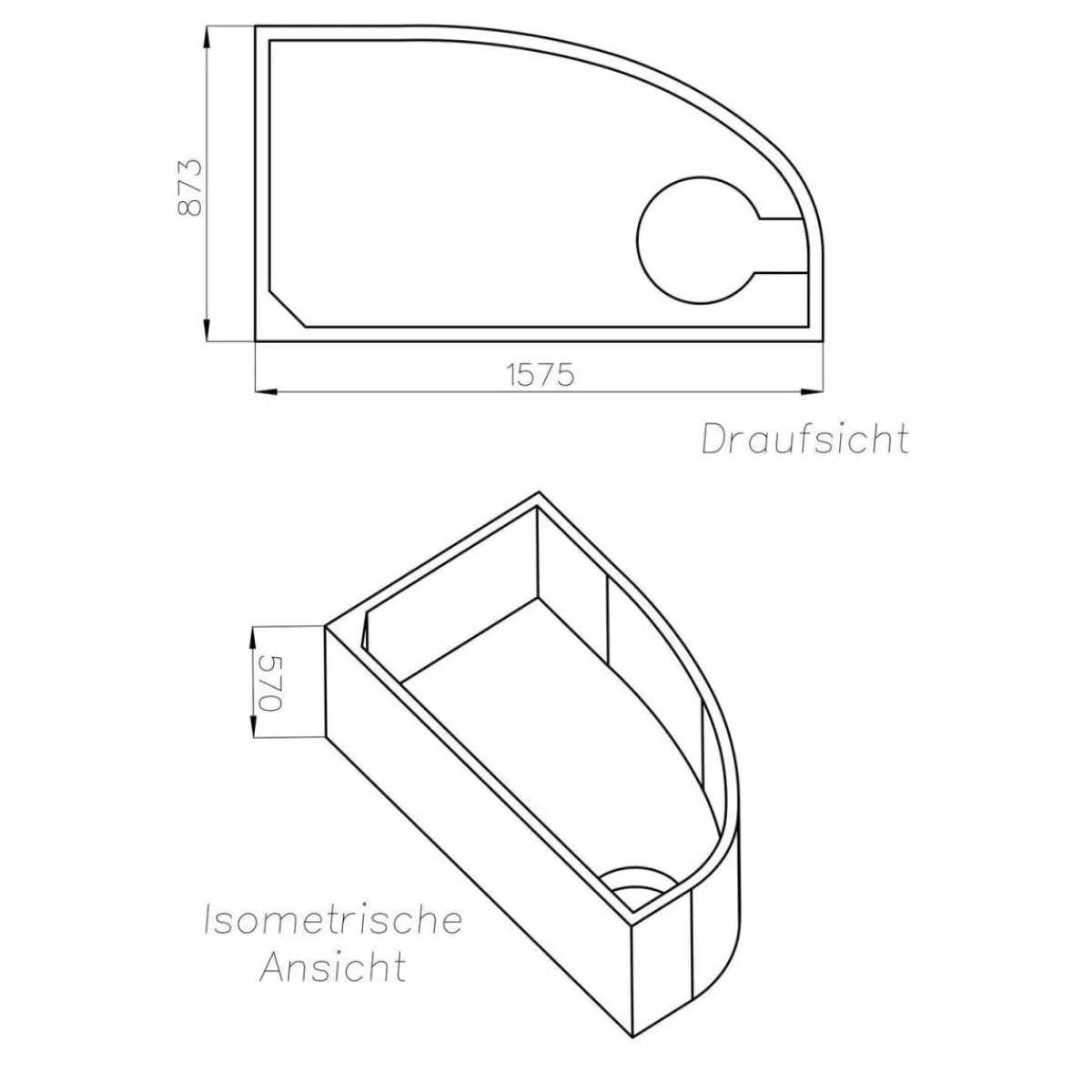 - – Maße: 1600 x 900 mm, Höhe: 570 mm