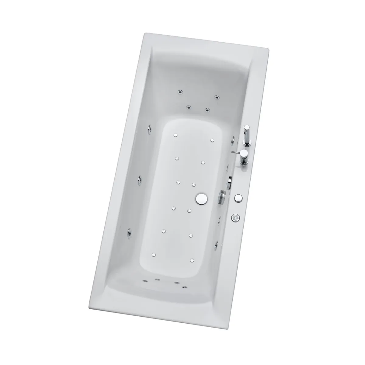 - Ausstattung Bedienteil: Elektronisches Bedienteil, Ab- & Überlaufgarnitur, 2 LED-Farblichtscheinwerfer