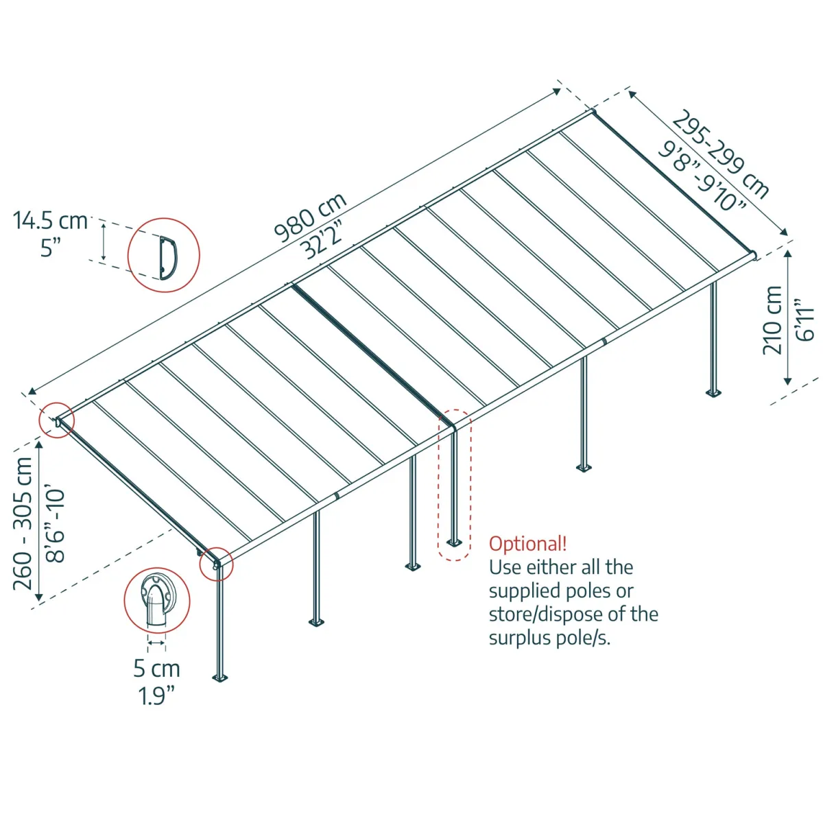 Palram Canopia Capri Alu Terrassenüberdachung Polycarbonat 3×9,7 m grau
