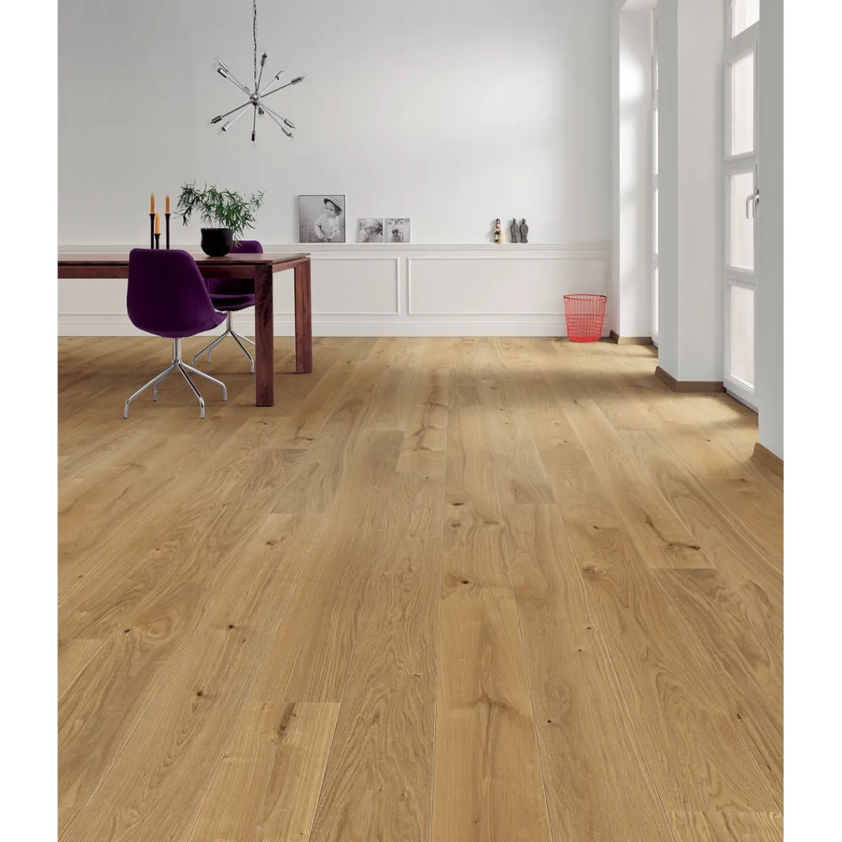 Mit dem Living by Haro Parkett Eiche Apart Landhausdiele mit Naturöl-Oberfläche können Sie jeden Raum aufwerten und ihn harmonisch mit nahezu jeder Einrichtung kombinieren. Die hochwertige Verarbeitung dieses Holzbodens sorgt für ein angenehmes Laufgefühl und eine hohe Stabilität. Mit einer Gesamtdicke von 11mm und ca. 2,5mm Edelholznutzschicht kann der Boden auch abgeschliffen werden.
